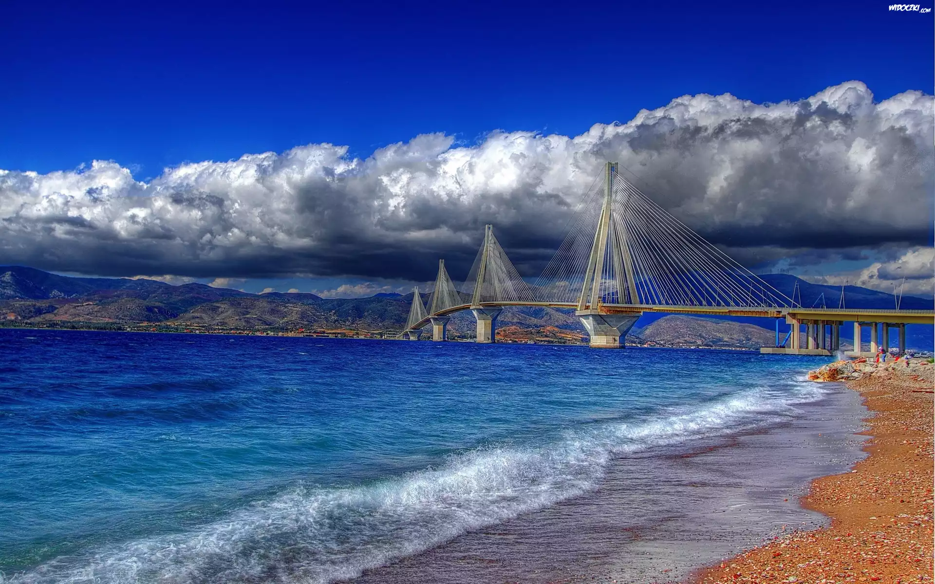Zdjęcia, Rzeka, Most, Góry, Chmury