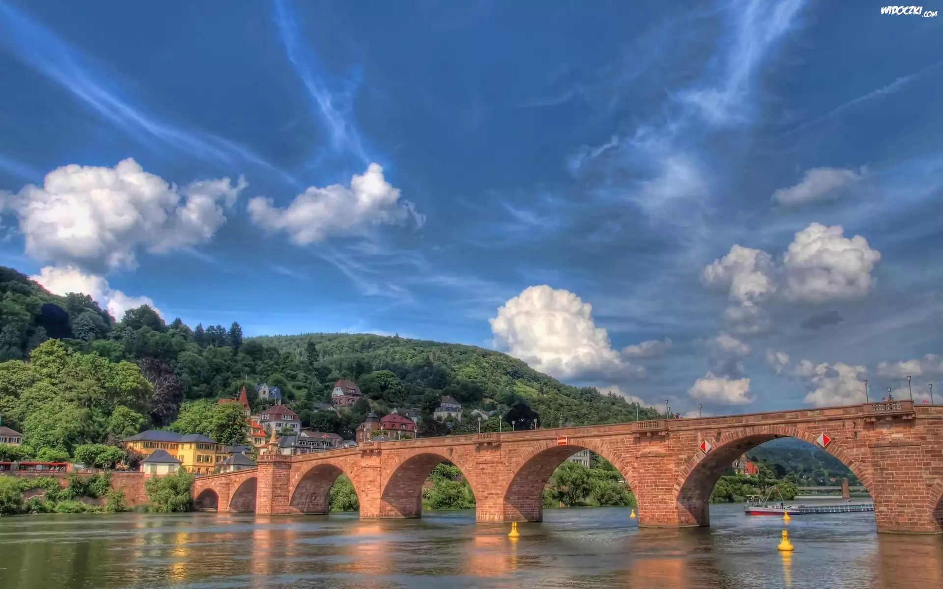 Zdjęcia, Rzeka, Most, Góry, Chmury