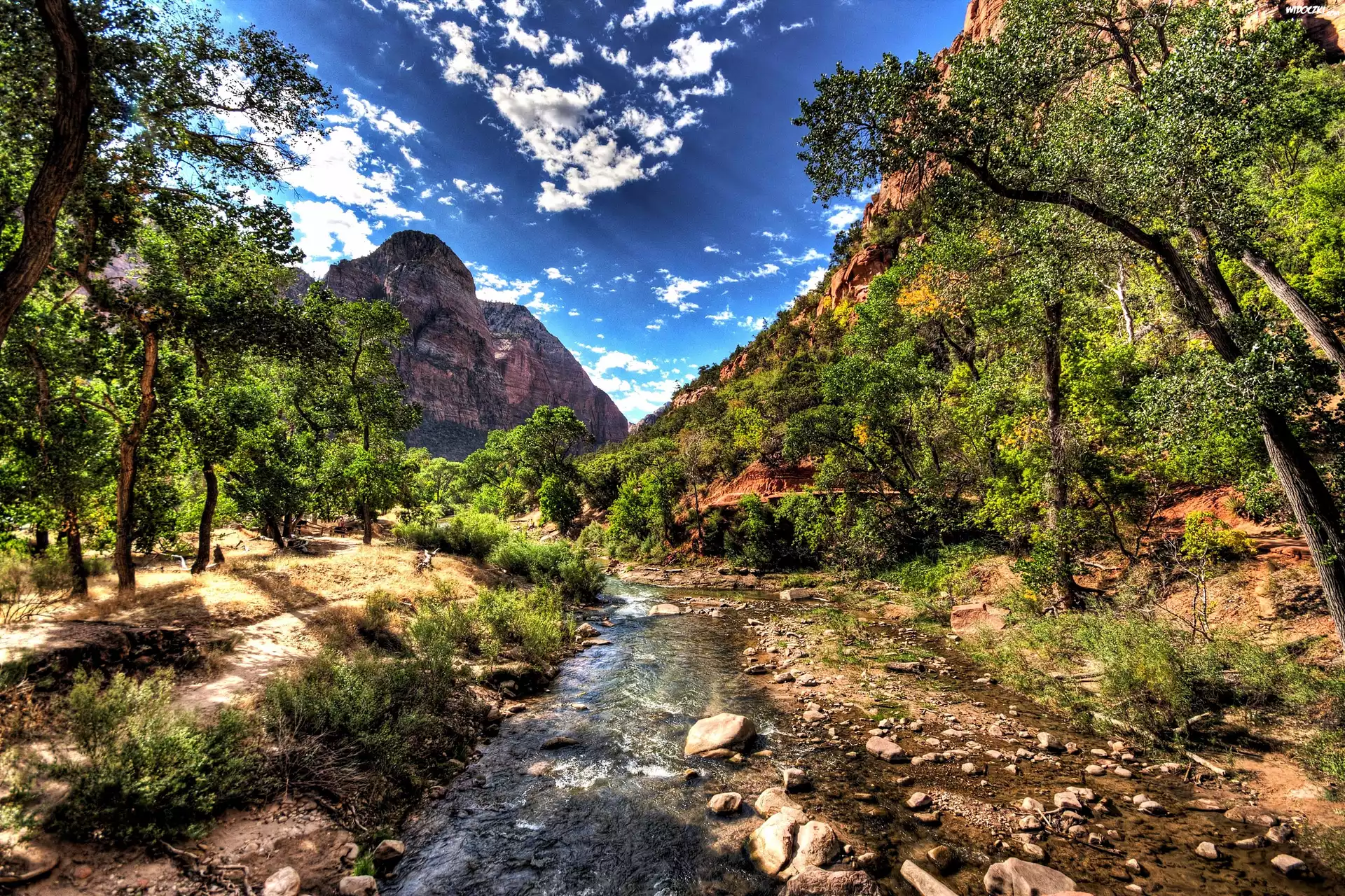 Zdjęcia, Góry, Rzeka, Las, Park, Narodowy, Zion, Utah