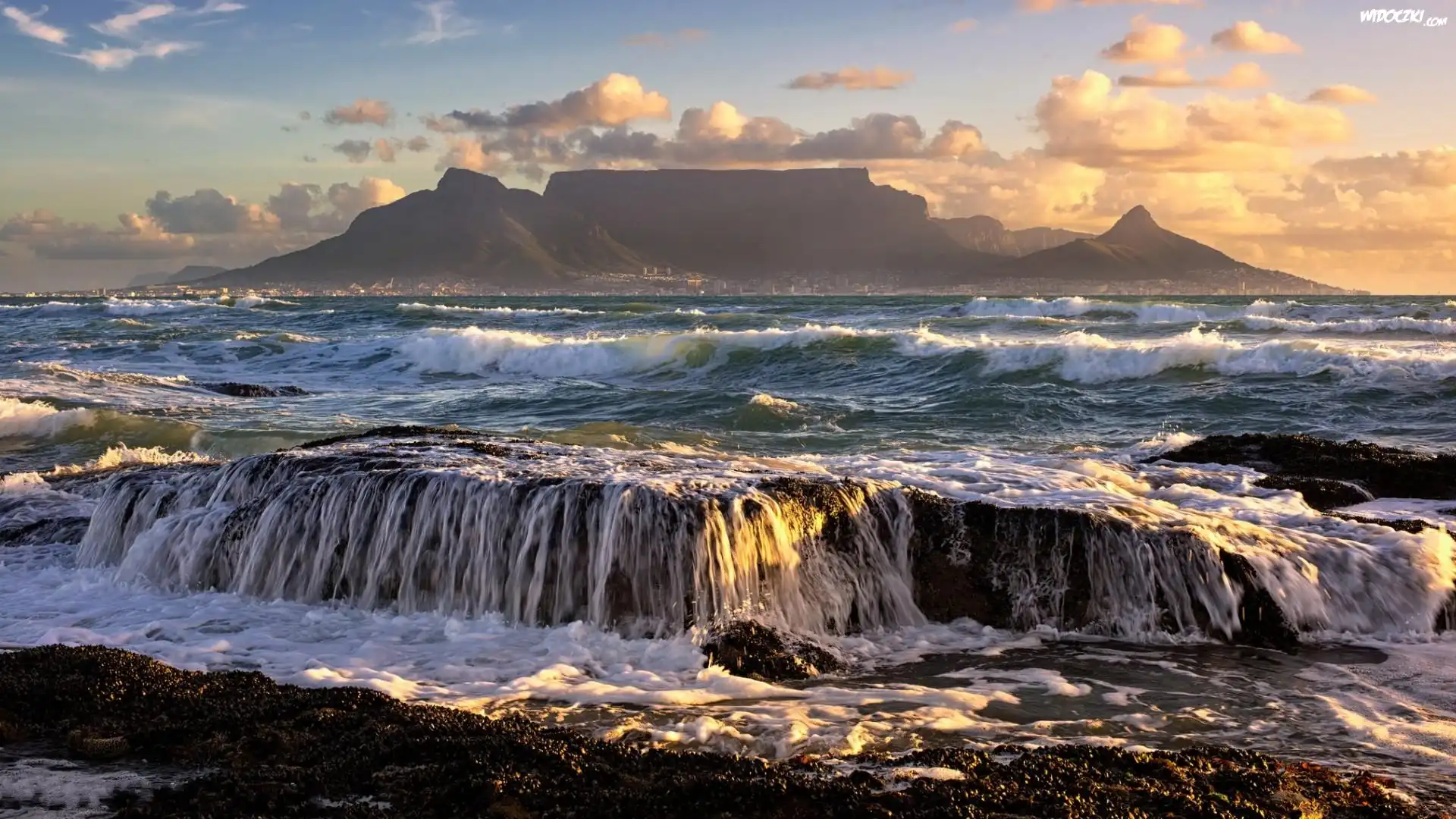 Zdjęcia, Rzeka, Fale, Wodospad, Góry, Chmury