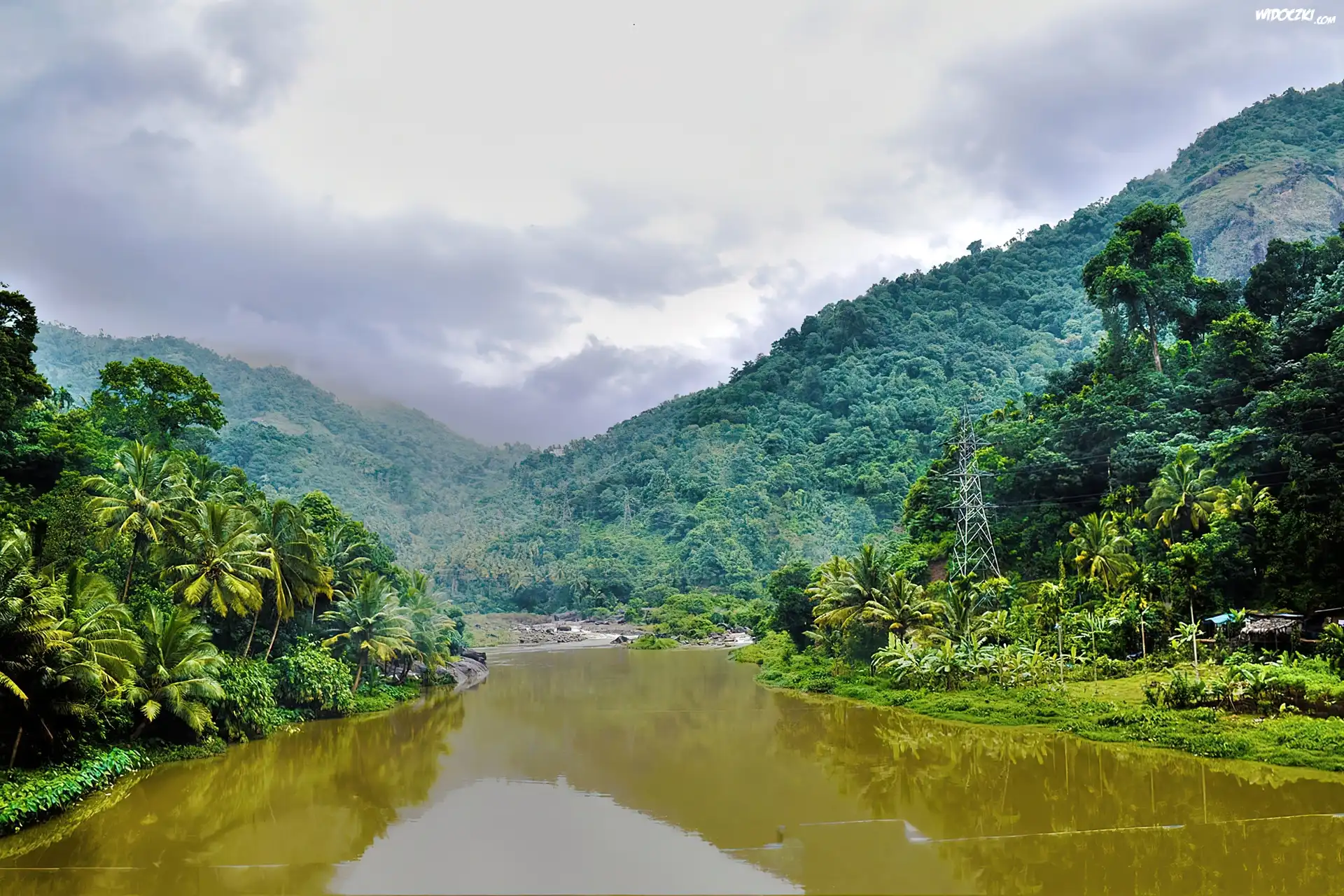 Rzeka, Zalesione, Góry, Palmy