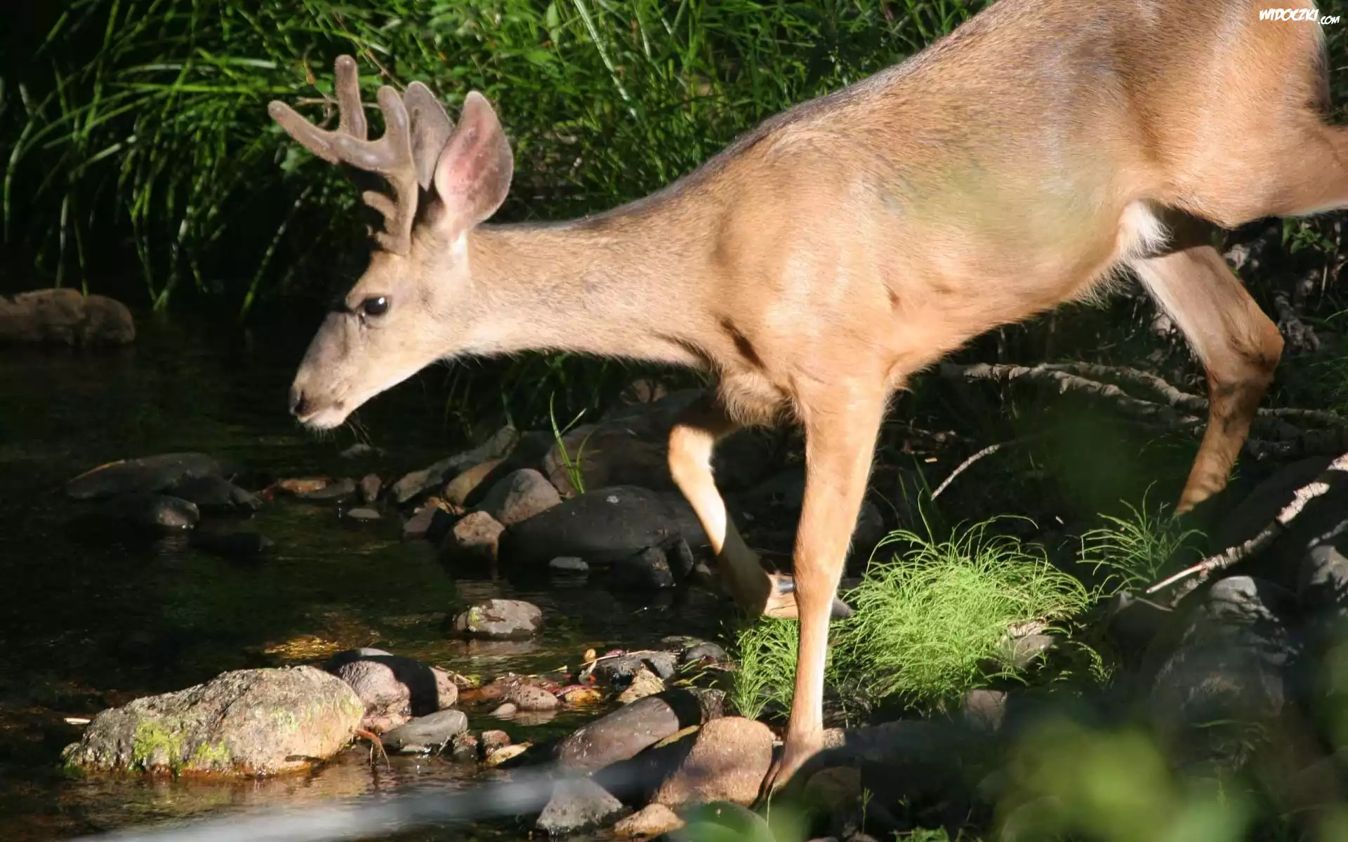 Zdjęcia, Jeleń, Rzeka, Kamienie