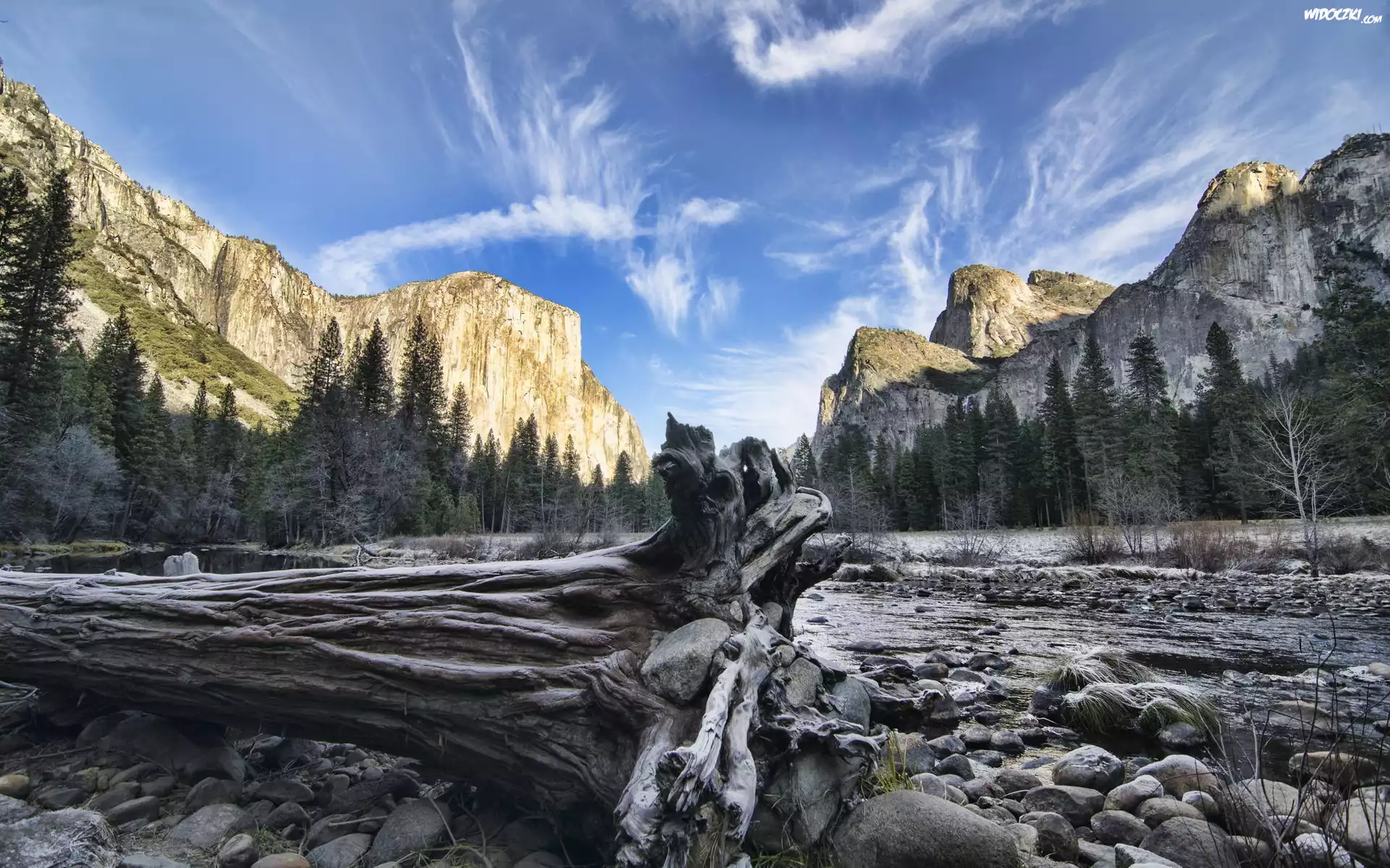 Zdjęcia, Rzeka, Kłoda, Kamienie, Góry