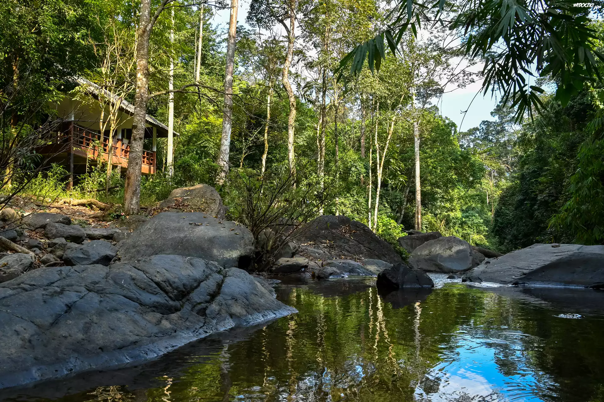 Rzeka, Las, Kamienie, Dom