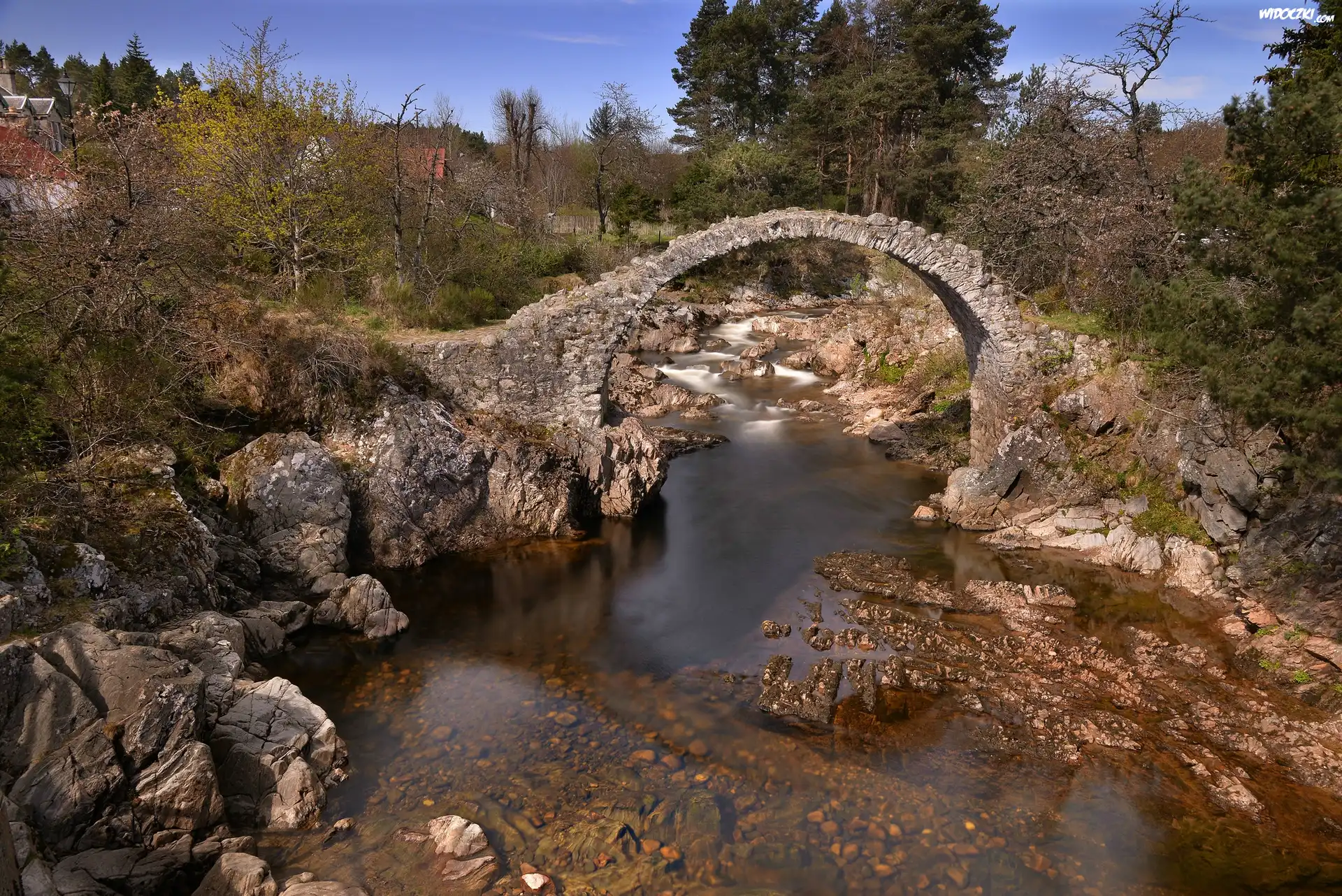 Zdjęcia, Rzeka, Kamienny, Most, Kamienie, Drzewa