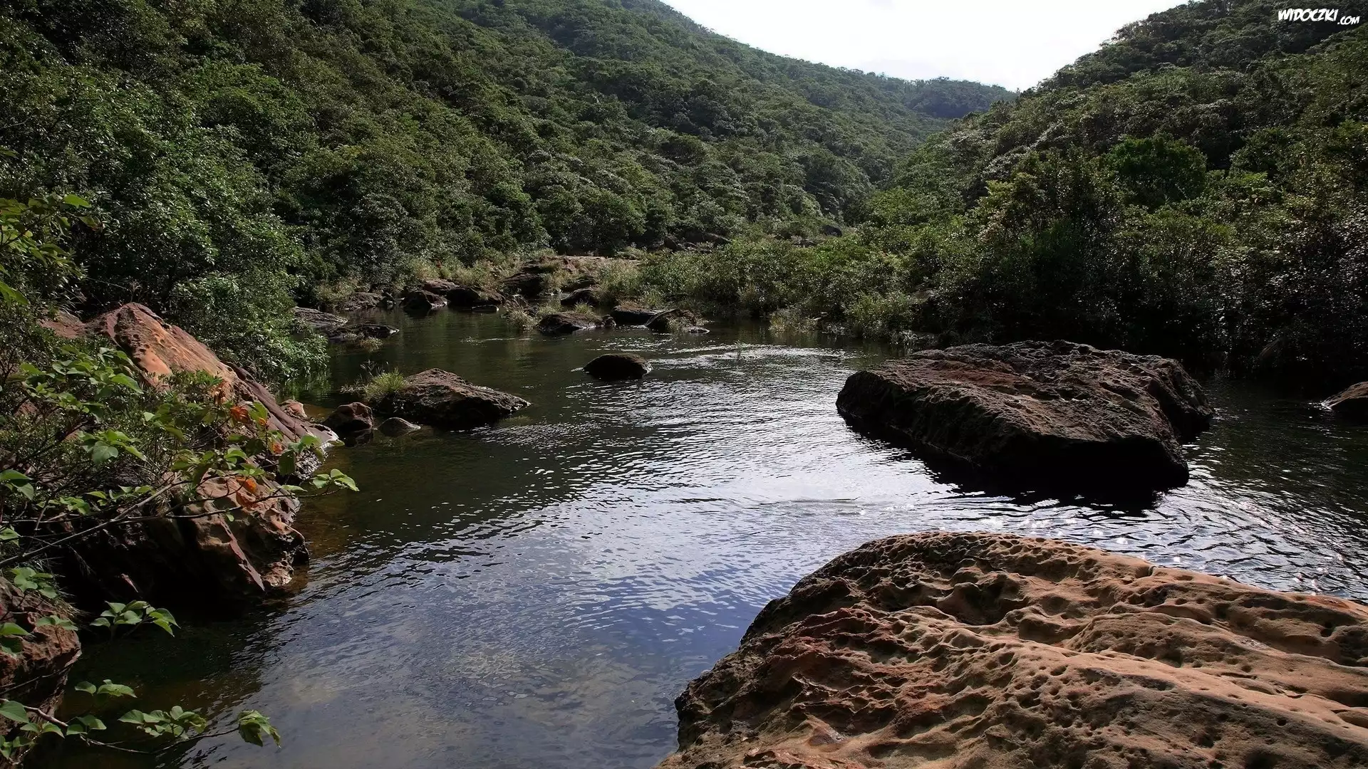 Zdjęcia, Rzeka, Skały, Kamienie, Las
