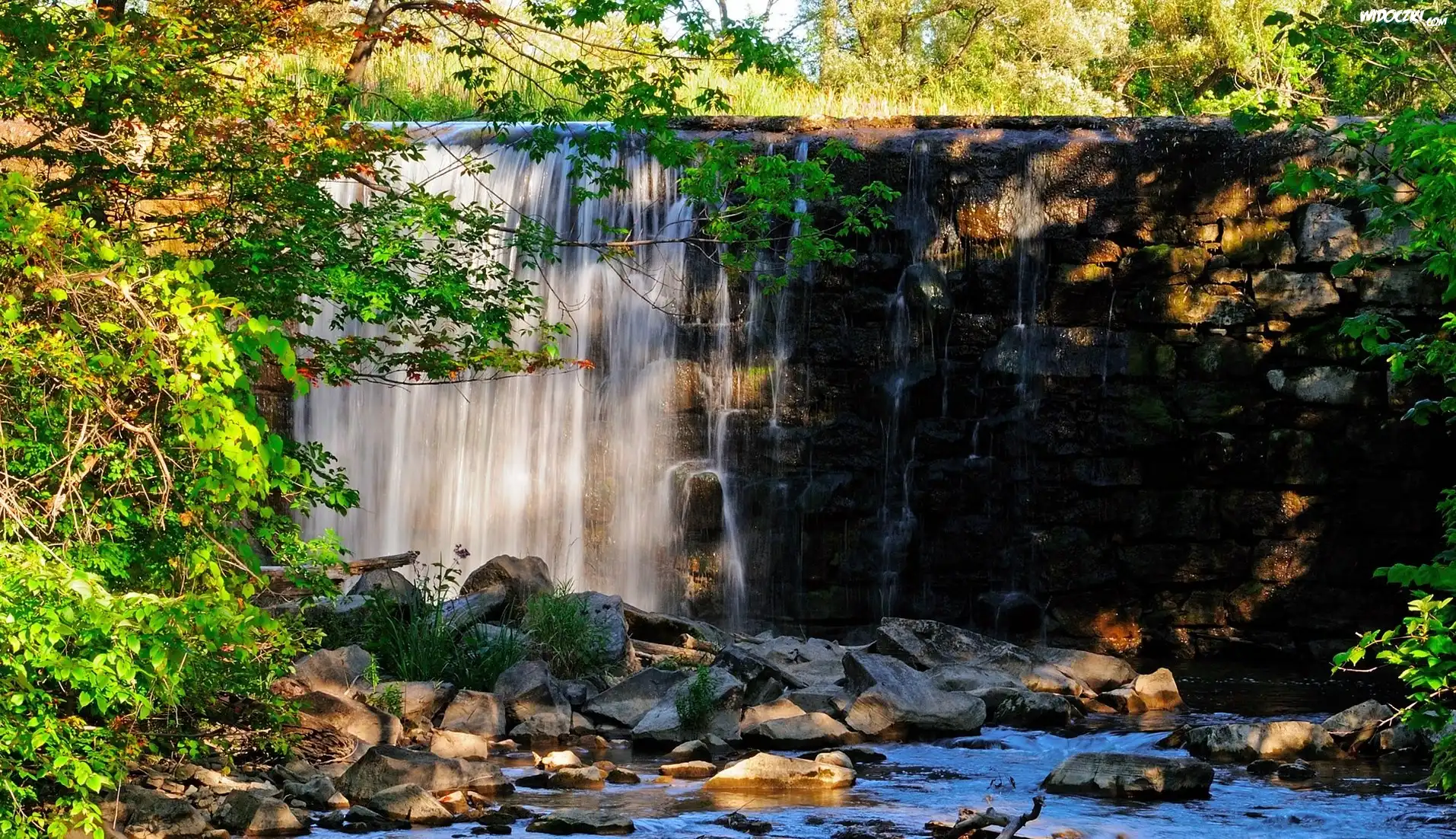 Zdjęcia, Rzeka, Wodospad, Kamienie, Drzewa