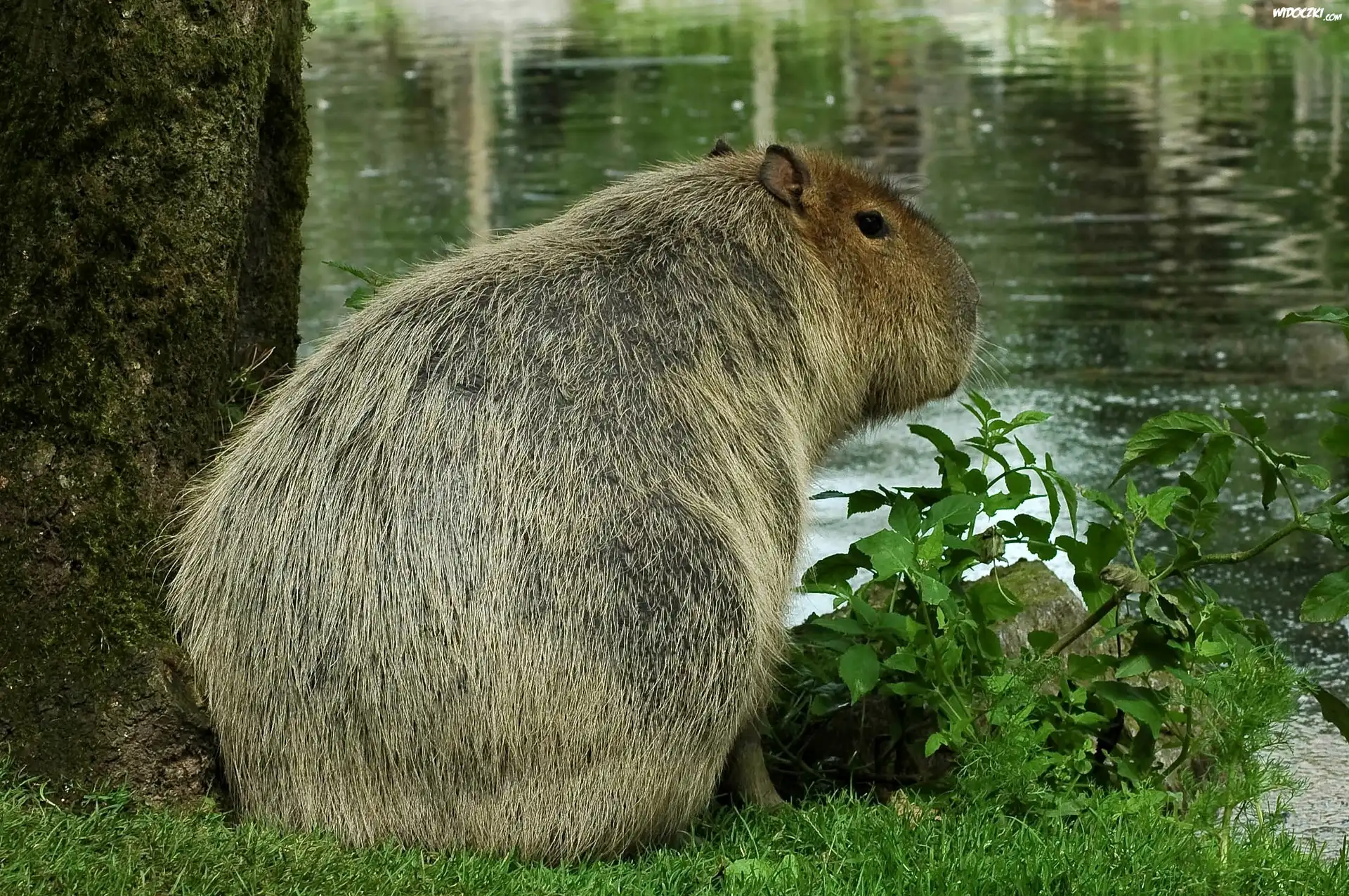 Zdjęcia, Kapibara, Rzeka, Rośliny