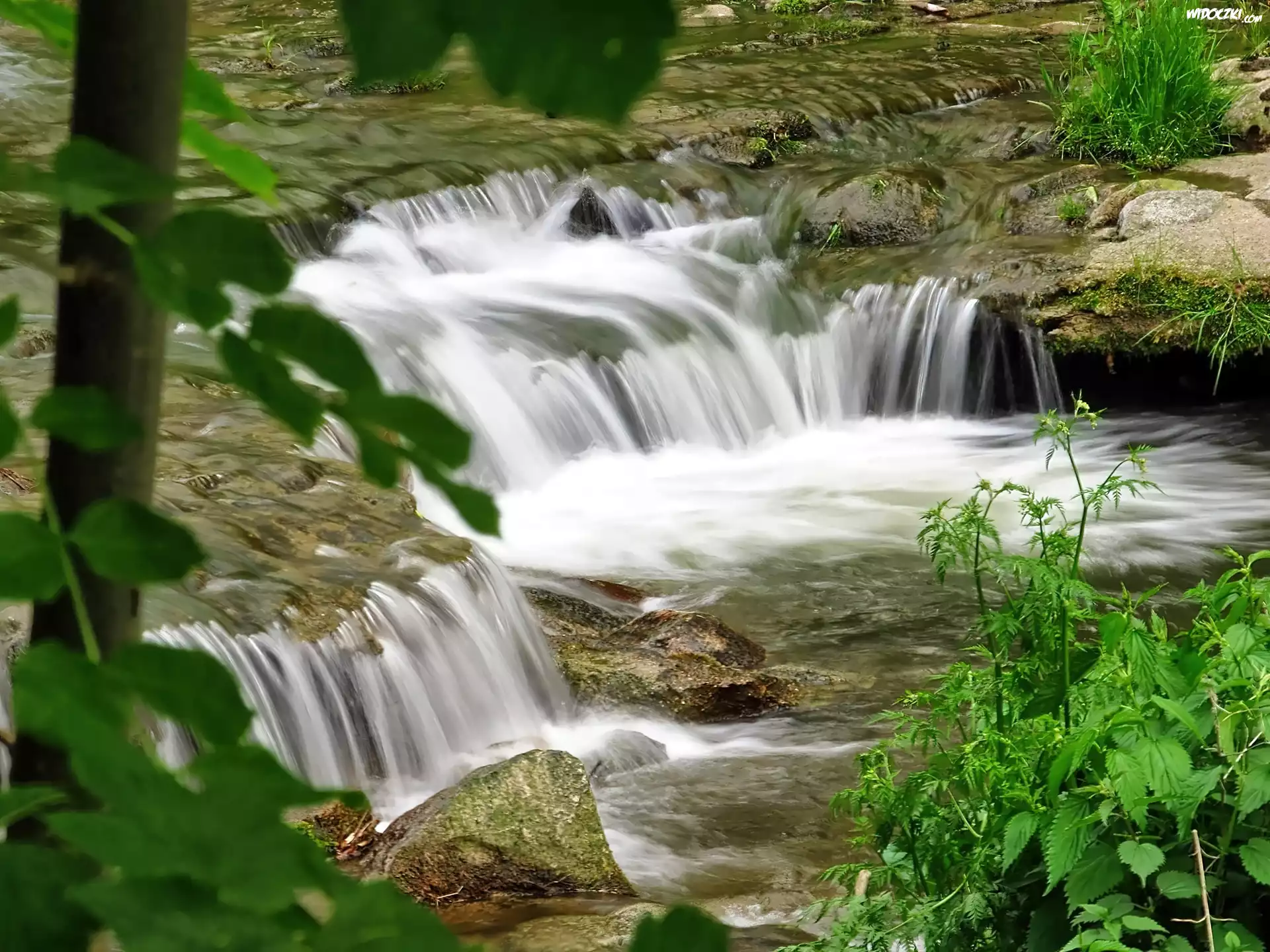 Zdjęcia, Kaskada, Rzeka, Liście
