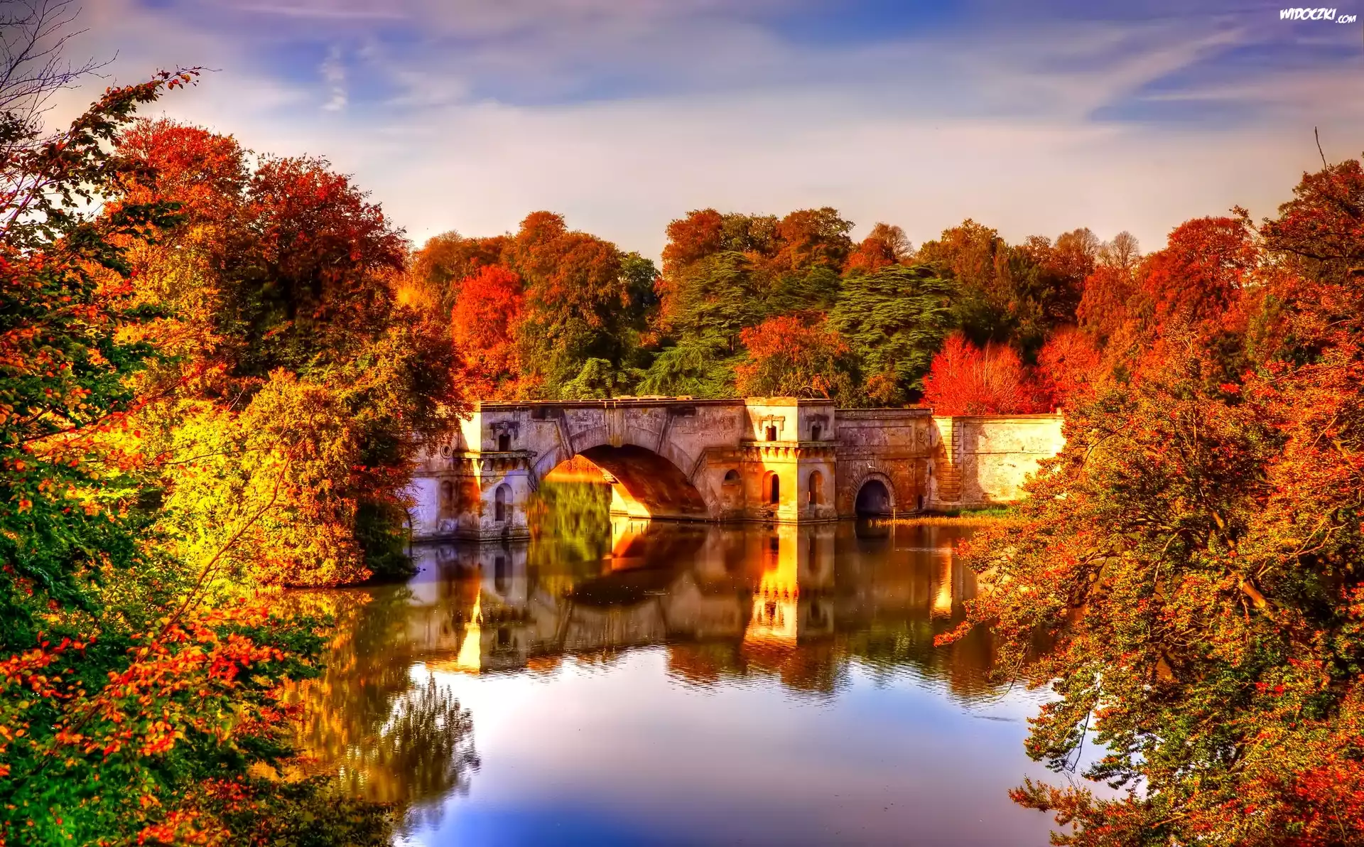 Zdj臋cia, Rzeka, Mostek, Kolorowe, Drzewa