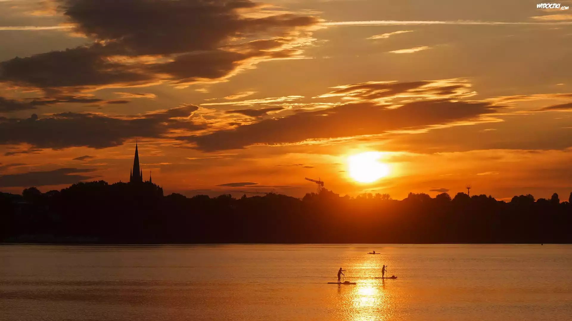 Zdjęcia, Rzeka, Zachód słońca, Wieża, Kościół, Chmury