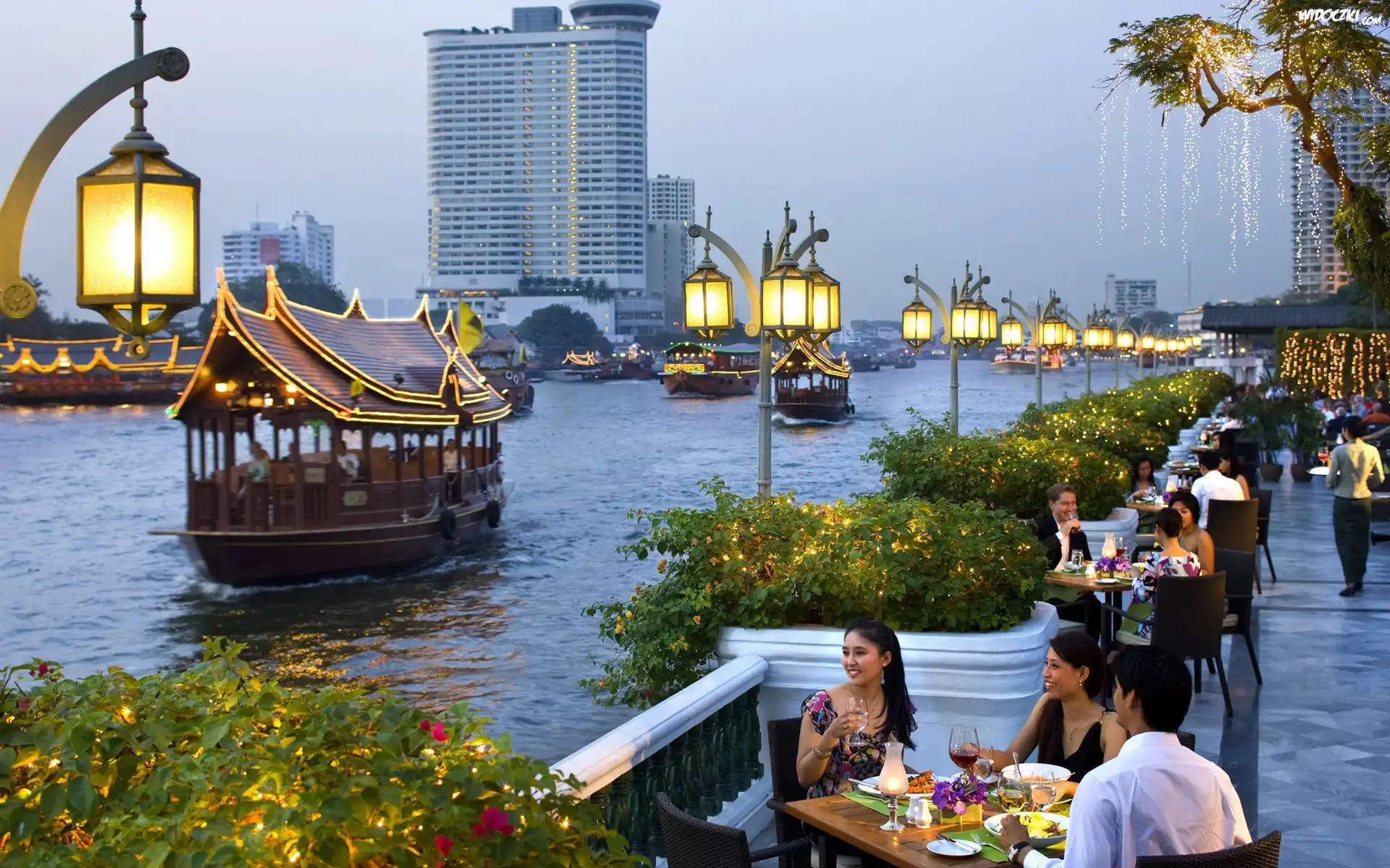 Zdjęcia, Rzeka, Promenada, Stateczki, Wycieczkowe, Lampiony, Japonia