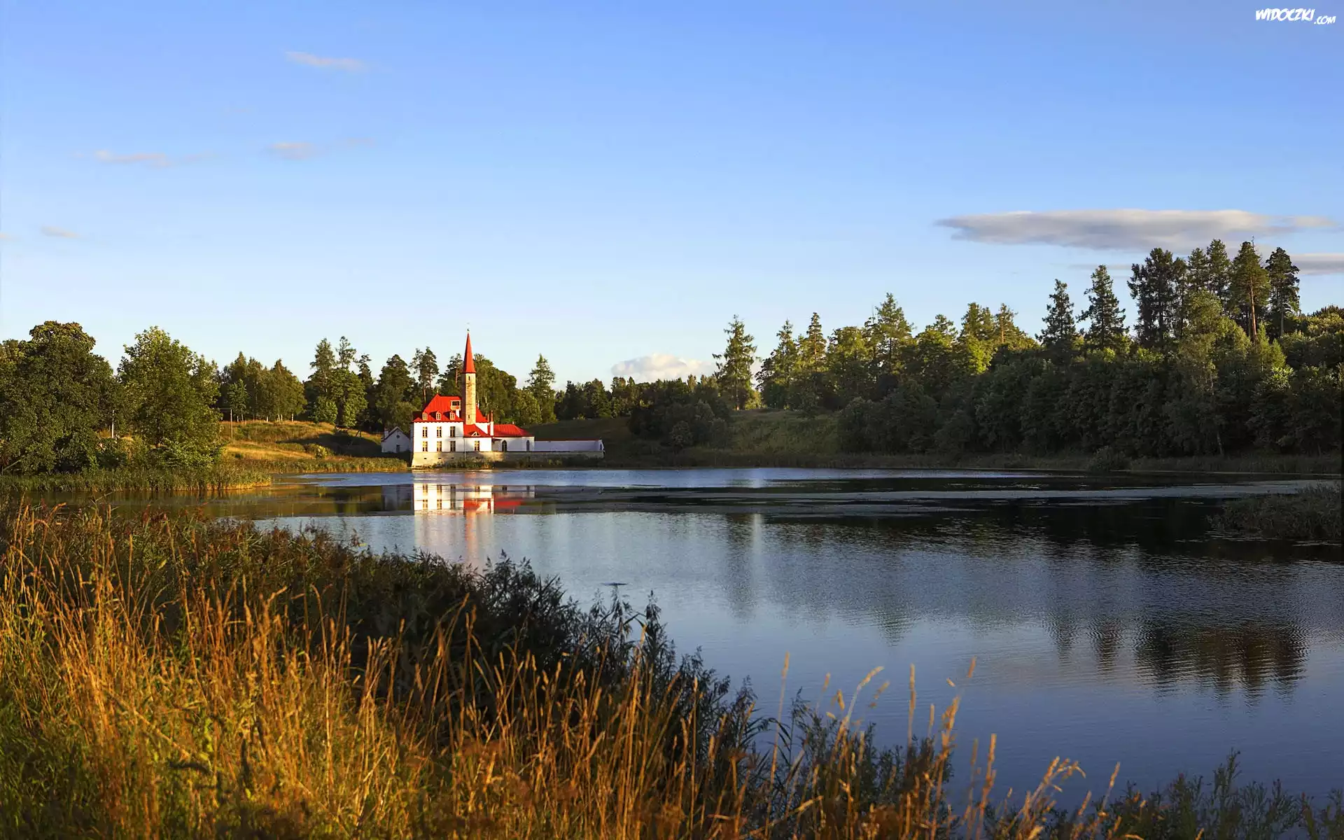 Zdjęcia, Rzeka, Budynek, Las, Trawy
