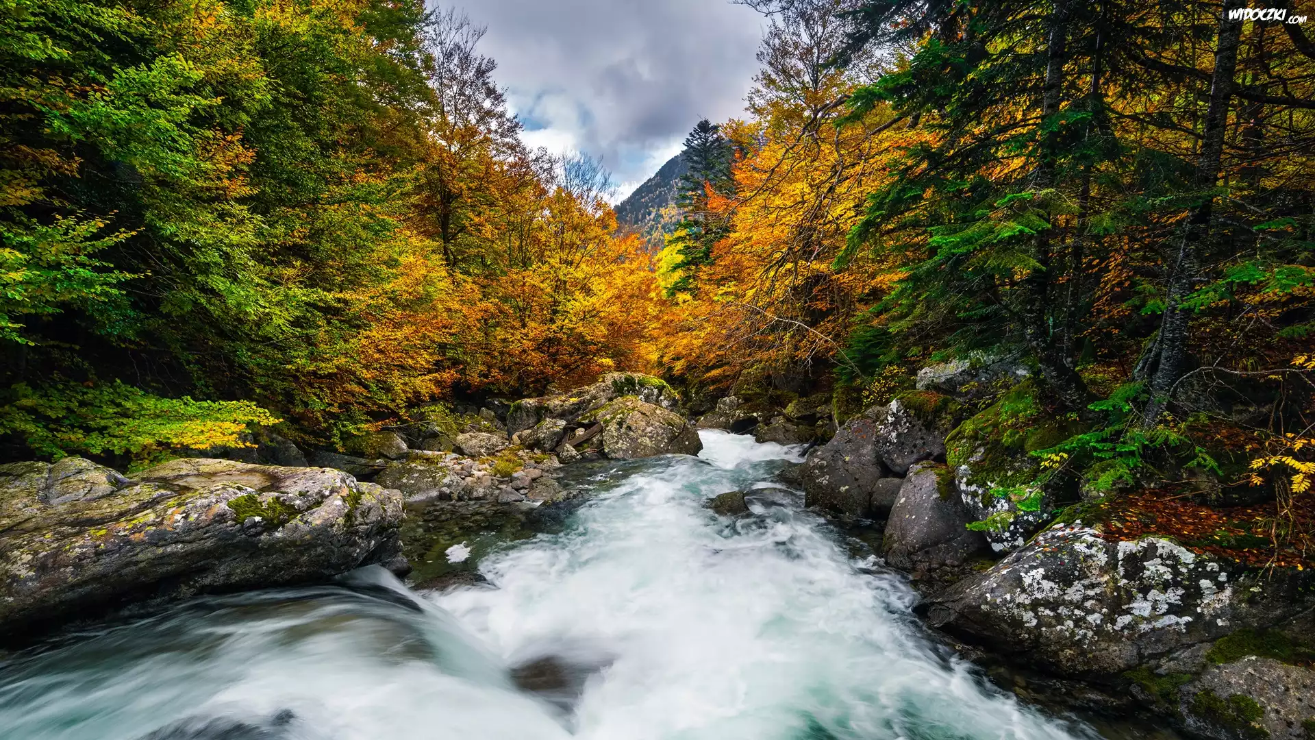 Zdjęcia, Rzeka, Skały, Drzewa, Las, Jesień