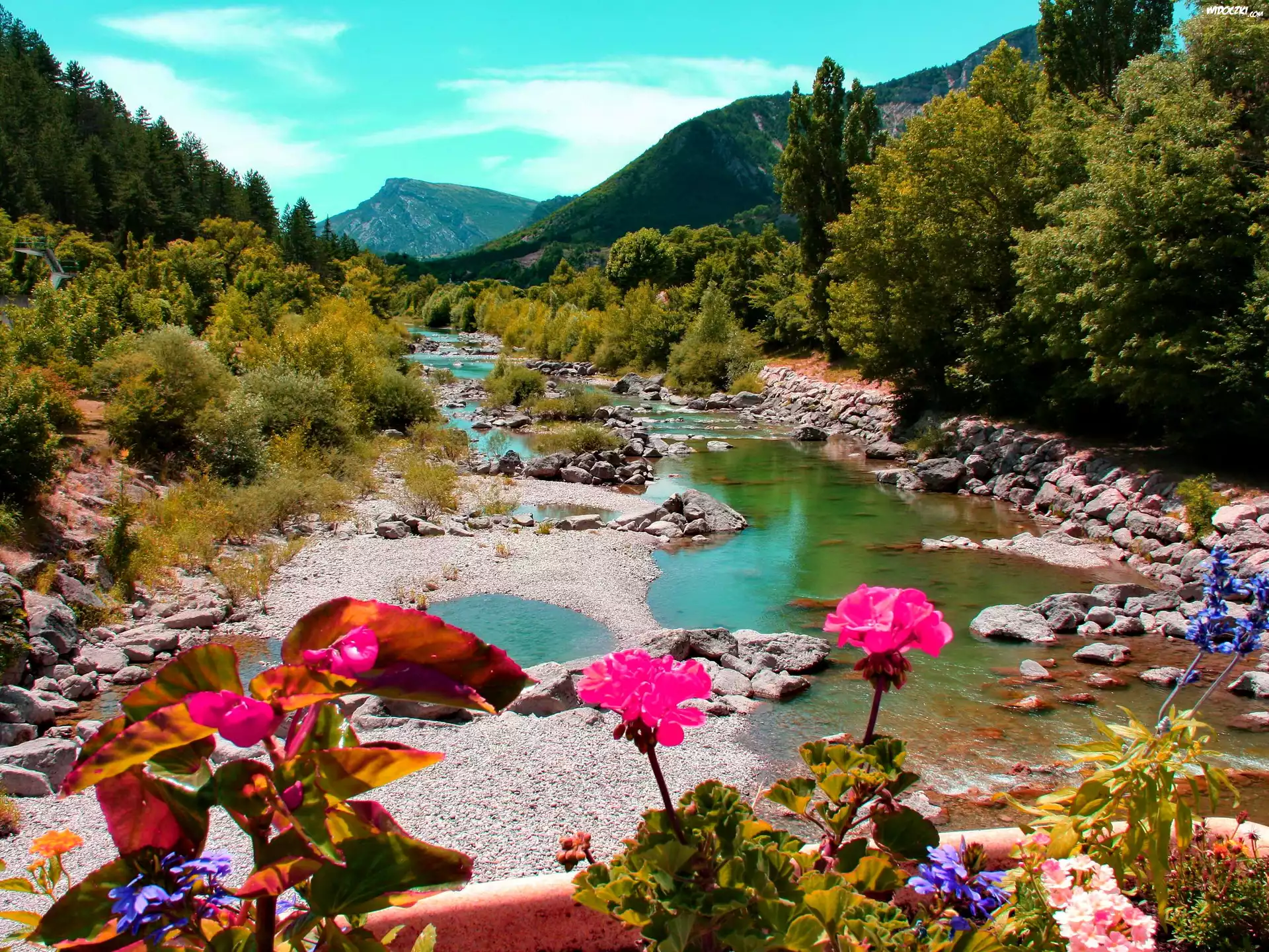 Zdjęcia, Rzeka, Góry, Las, Kwiatki