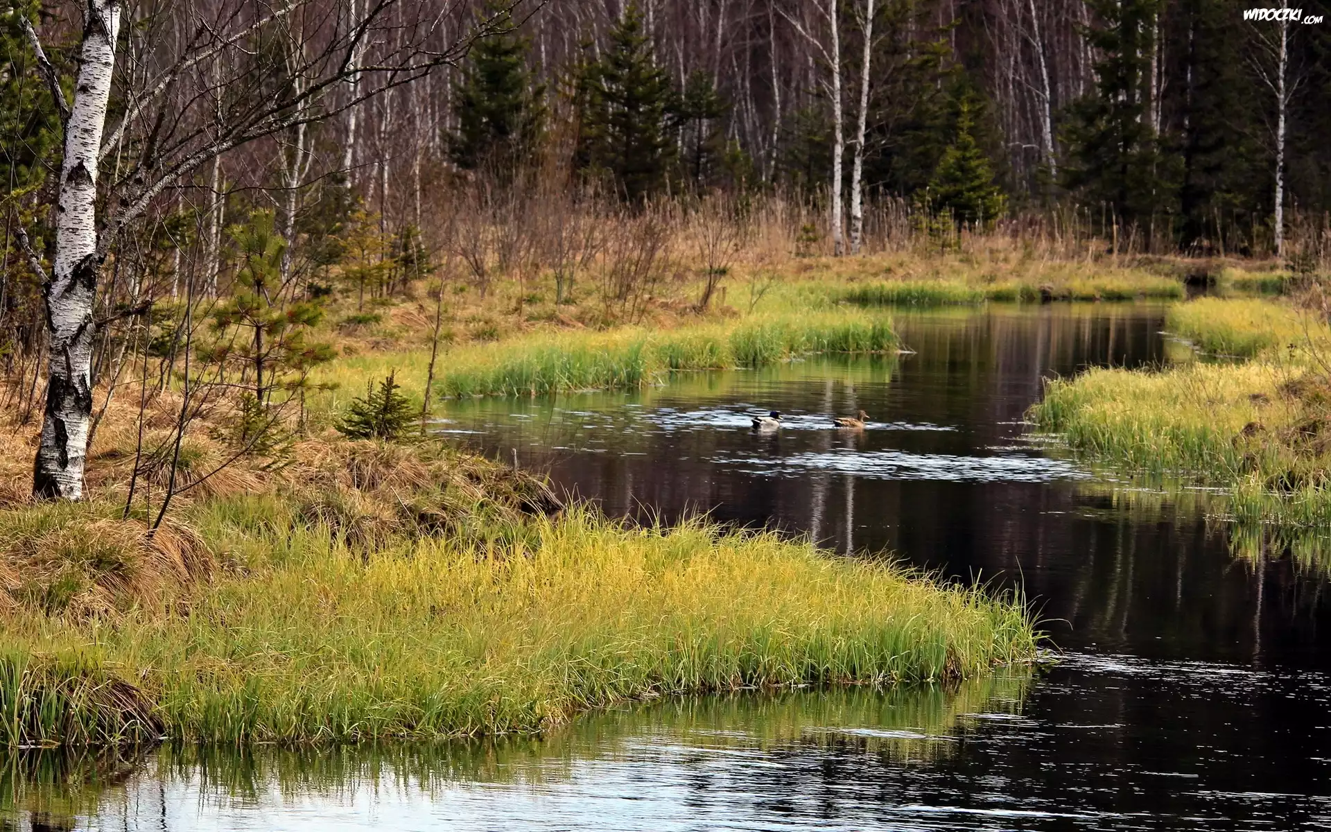 Zdjęcia, Las, Rzeka, Kaczki