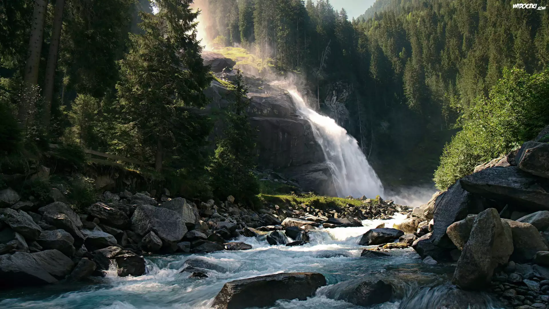 Zdjęcia, Wodospad, Rzeka, Las, Drzewa, Kamienie