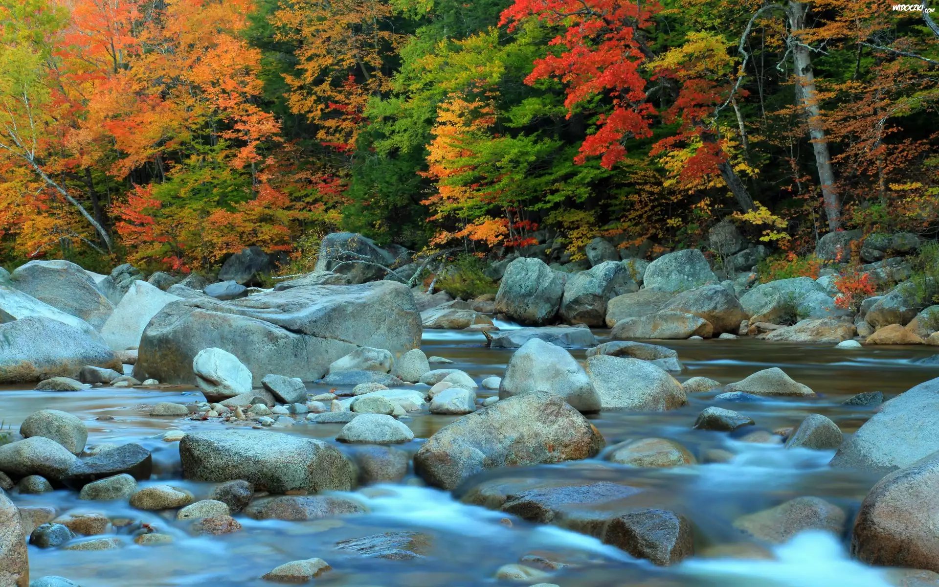 Zdjęcia, Rzeka, Kamienie, Las, Jesień