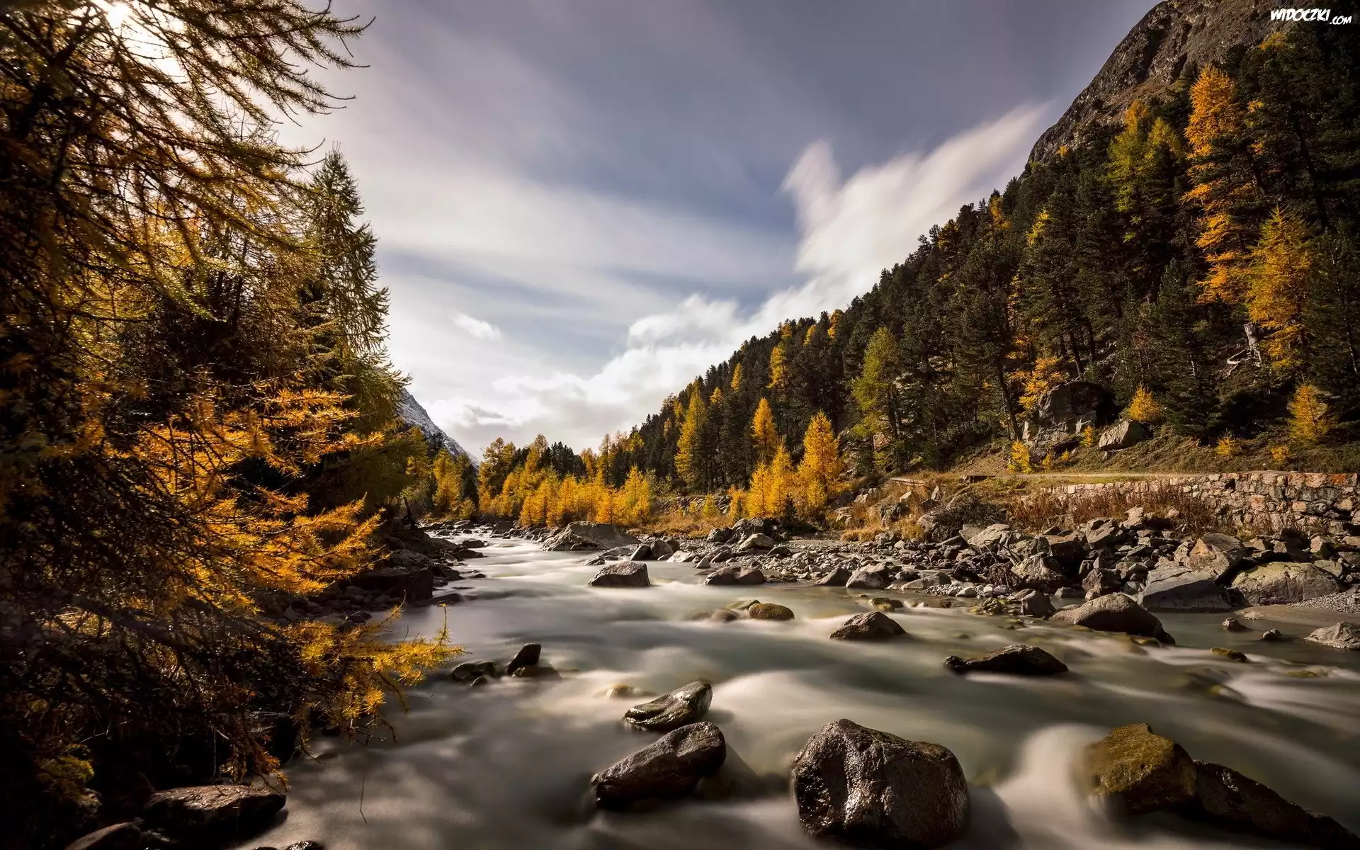 Zdjęcia, Rzeka, Kamienie, Las, Jesień