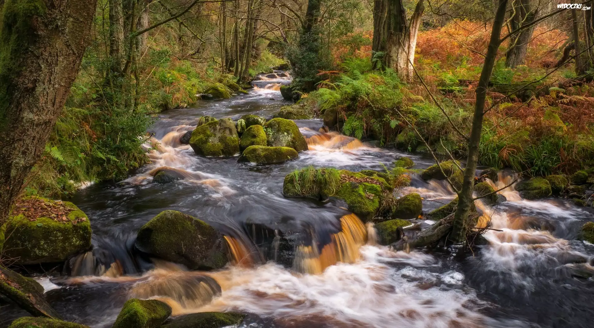 Zdjęcia, Rzeka, Omszałe, Kamienie, Las, Drzewa