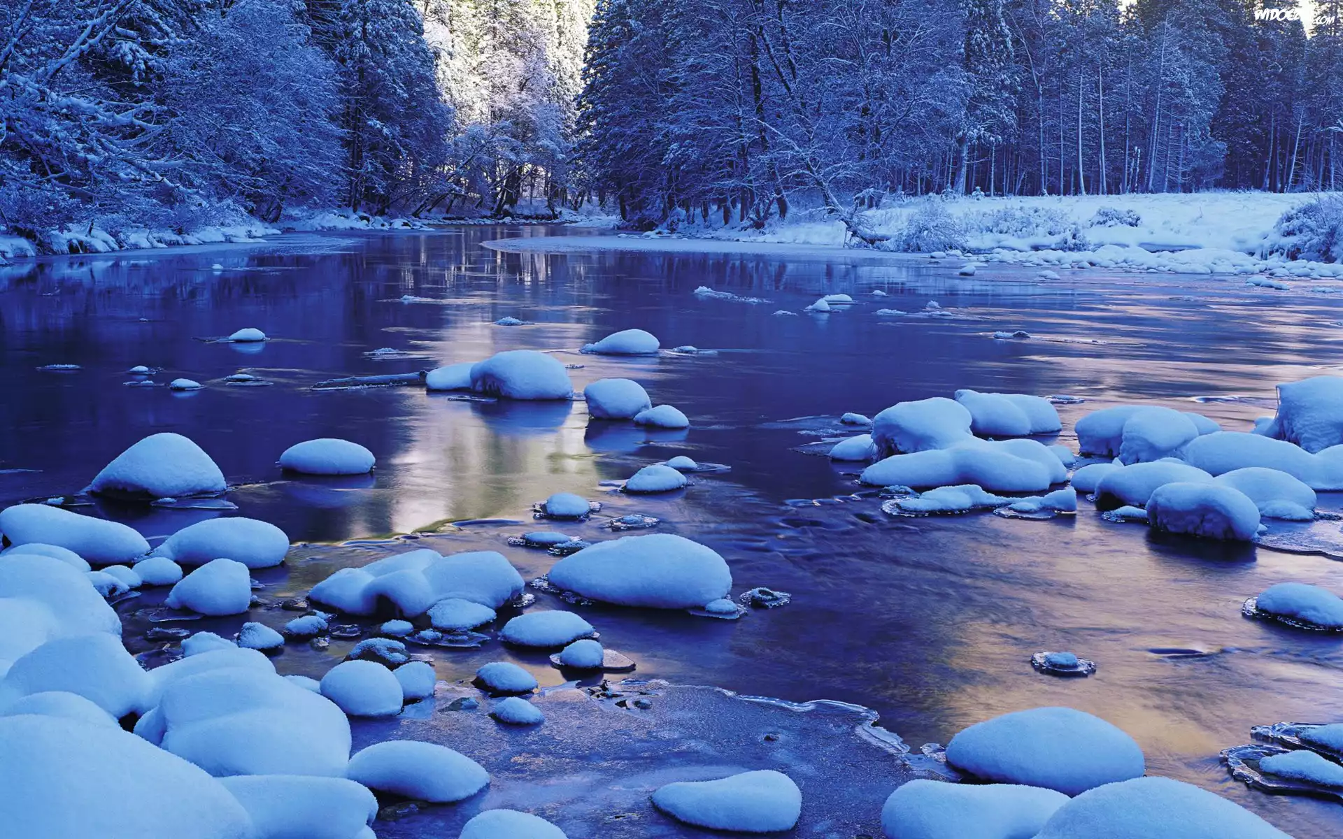 Zdjęcia, Rzeka, Kamienie, Las, Zima