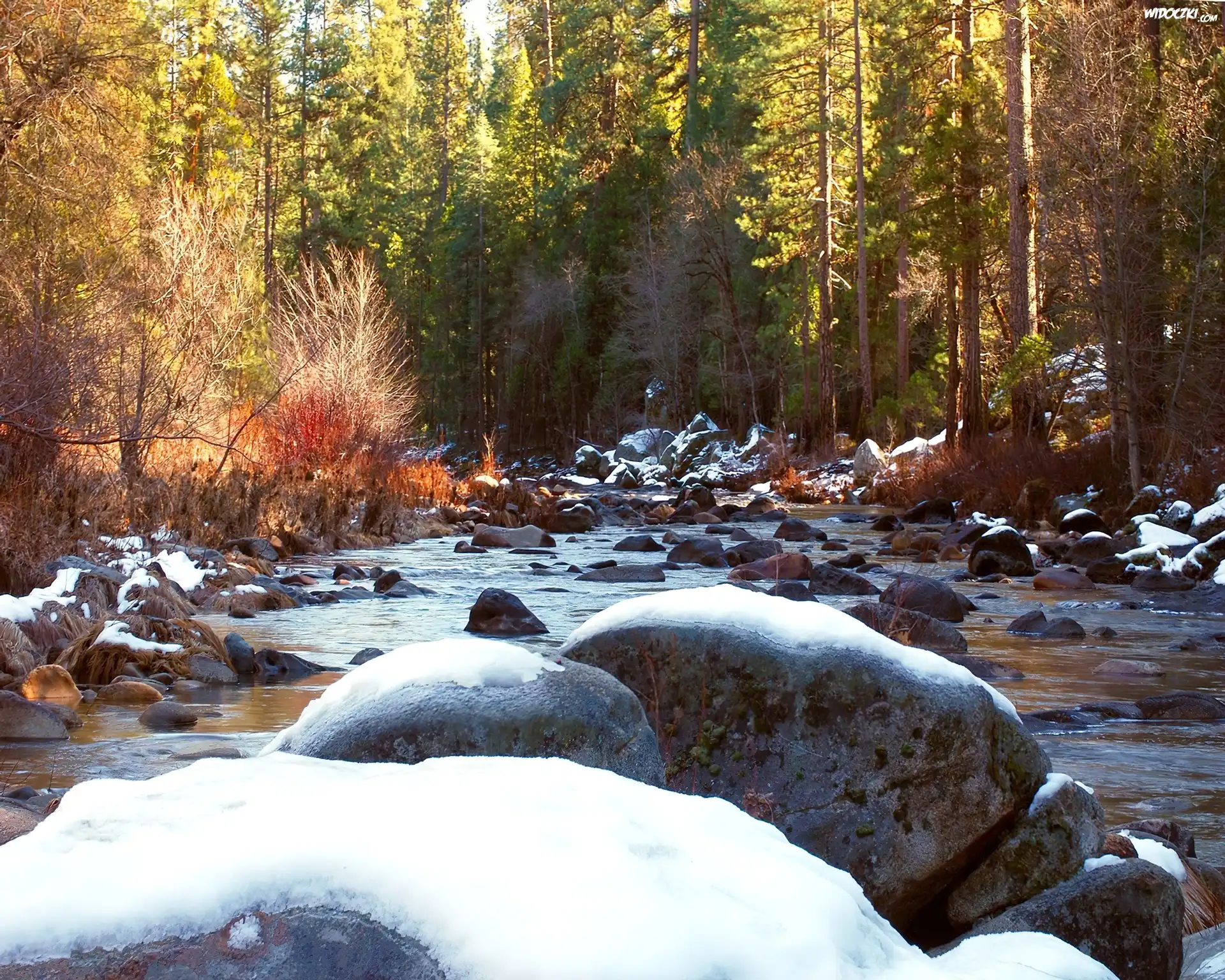 Zdjęcia, Rzeka, Kamienie, Las, Zima