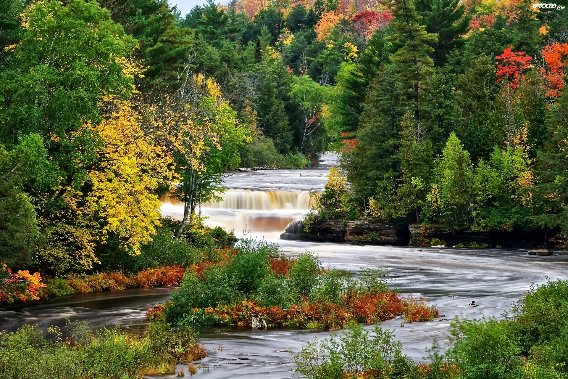 Zdjęcia, Rzeka, Kaskada, Las, Jesień