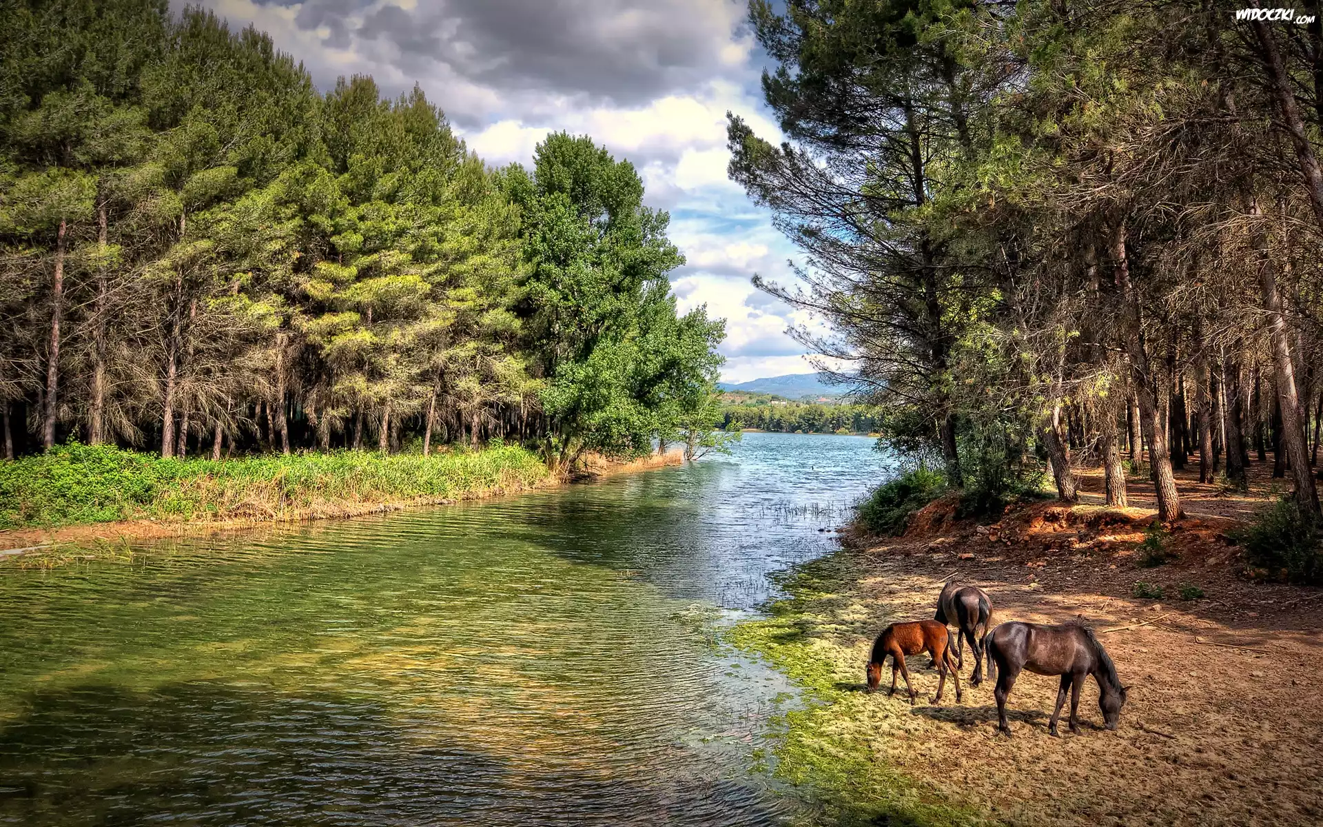 Zdjęcia, Las, Rzeka, Konie
