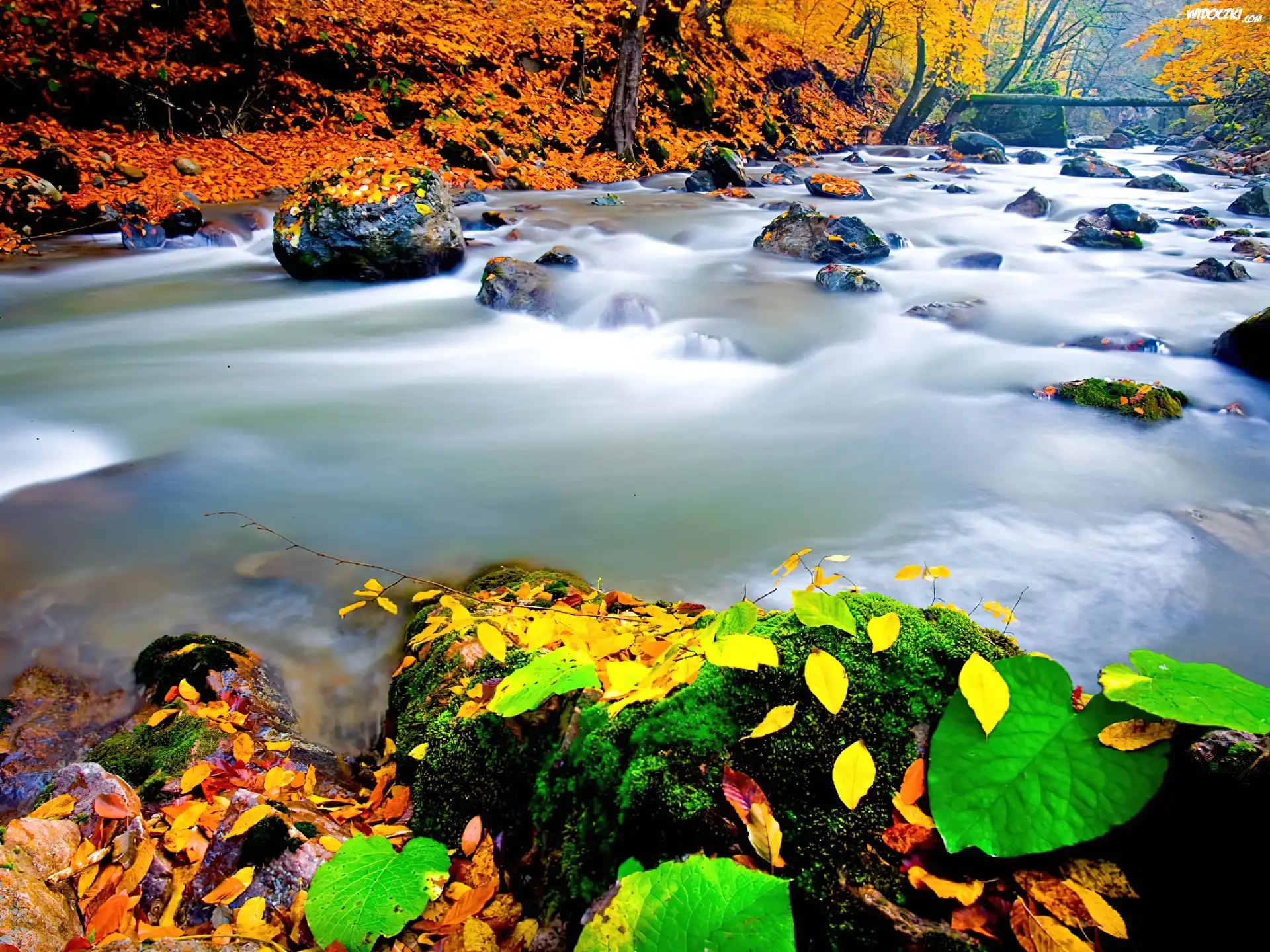 Zdjęcia, Las, Rzeka, Liście
