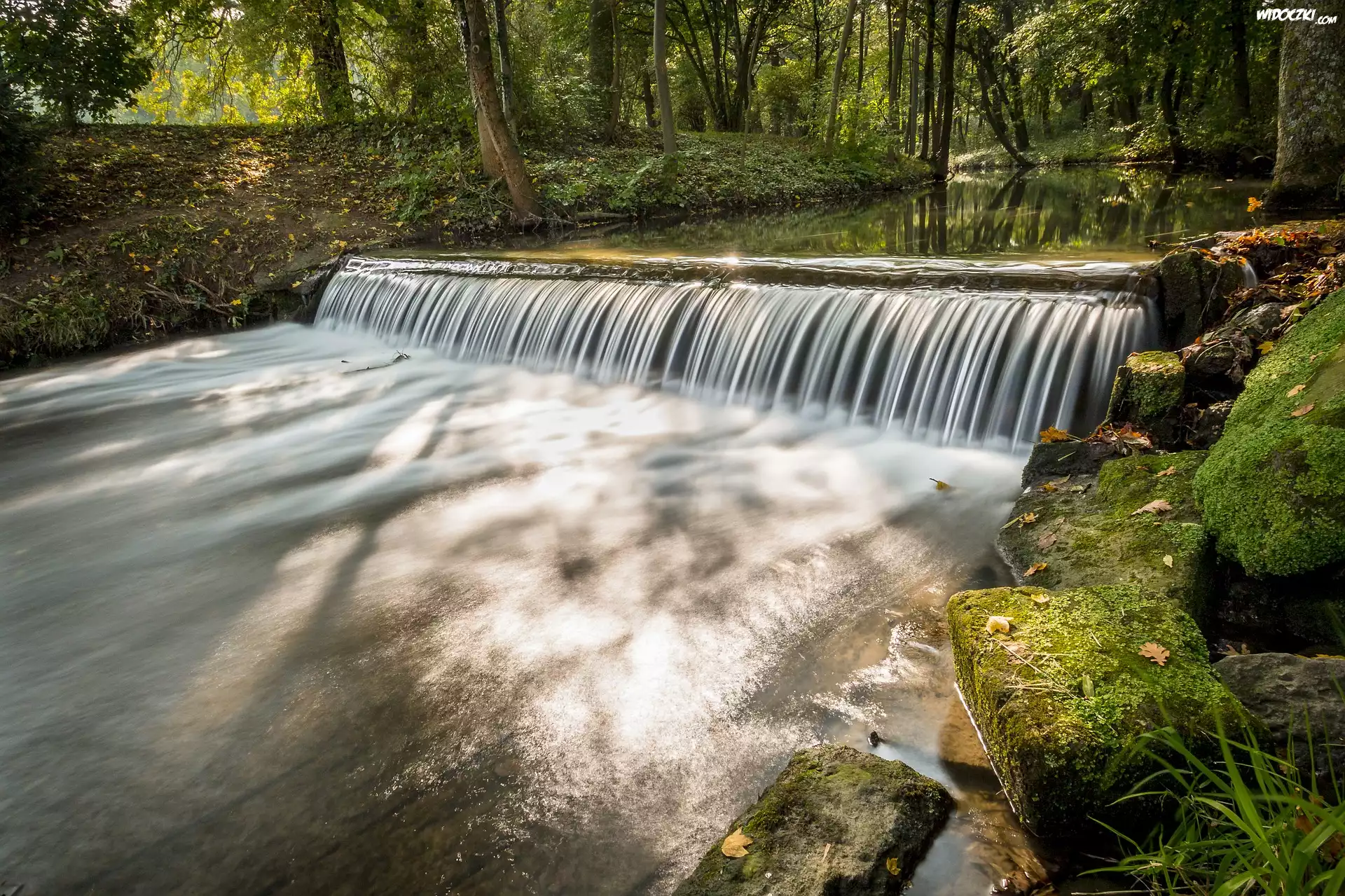 Zdjęcia, Las, Rzeka, Próg rzeczny, Omszałe, Kamienie, Rośliny