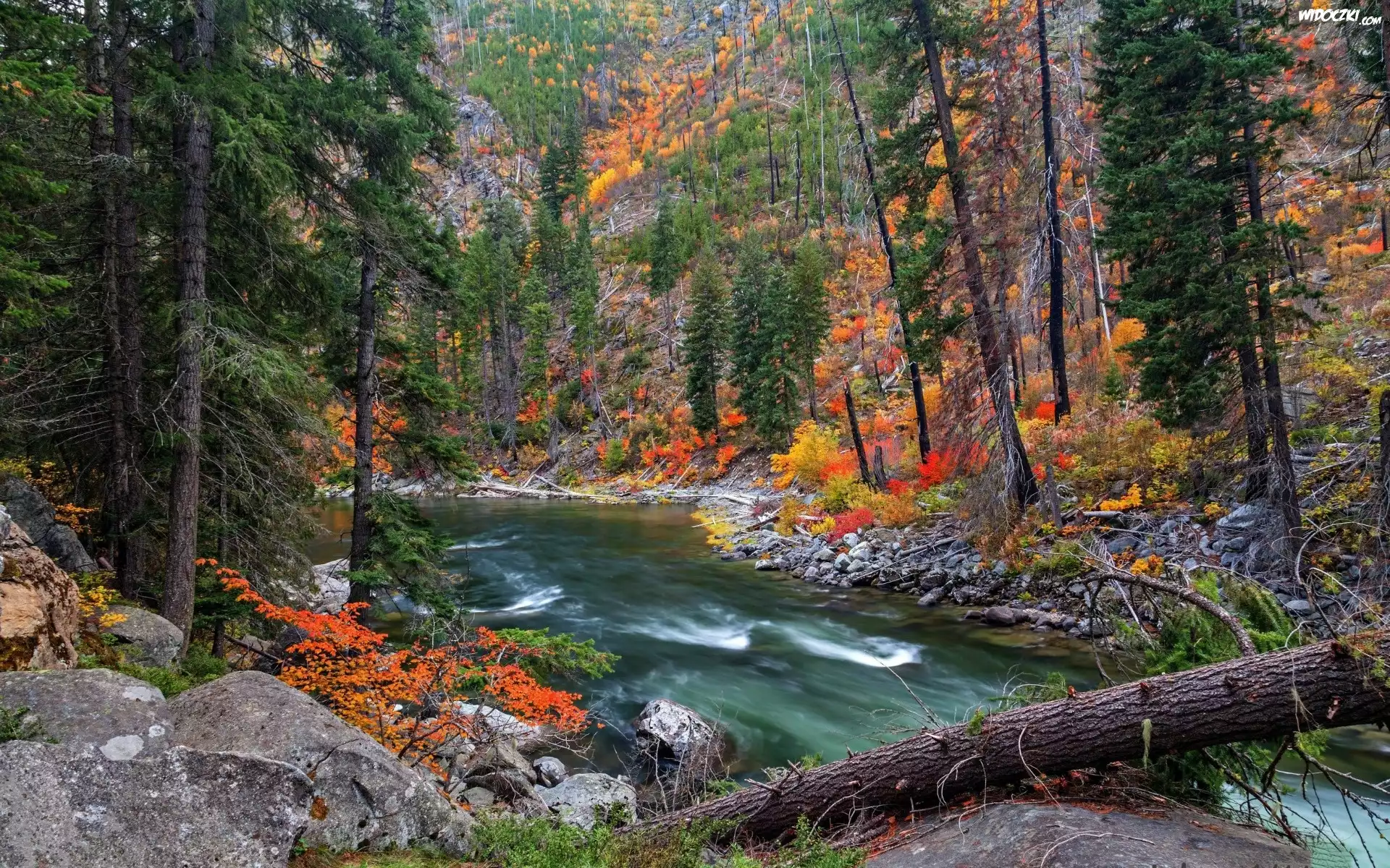 Zdjęcia, Rzeka, Skały, Las, Jesień