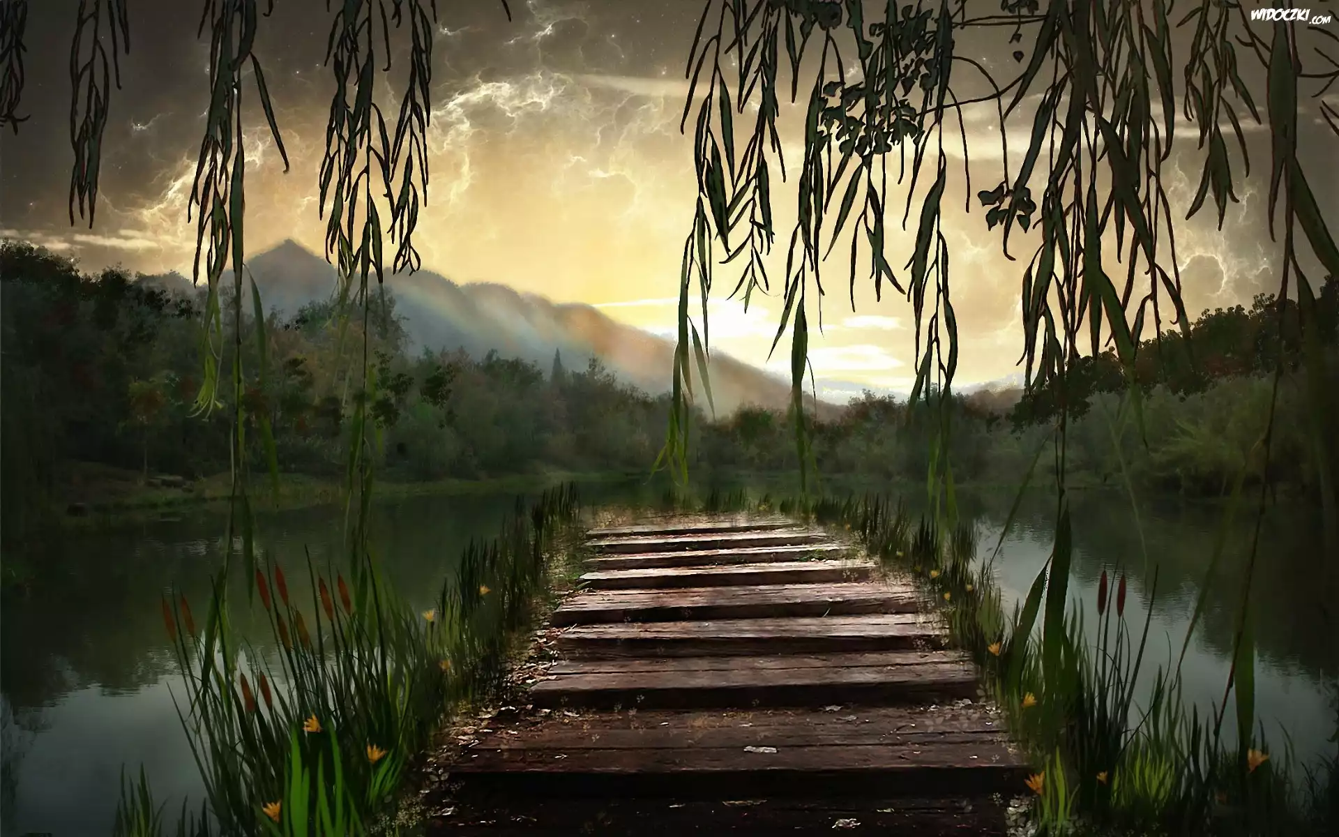 Zdjęcia, Rzeka, Góry, Lasy, Pomost