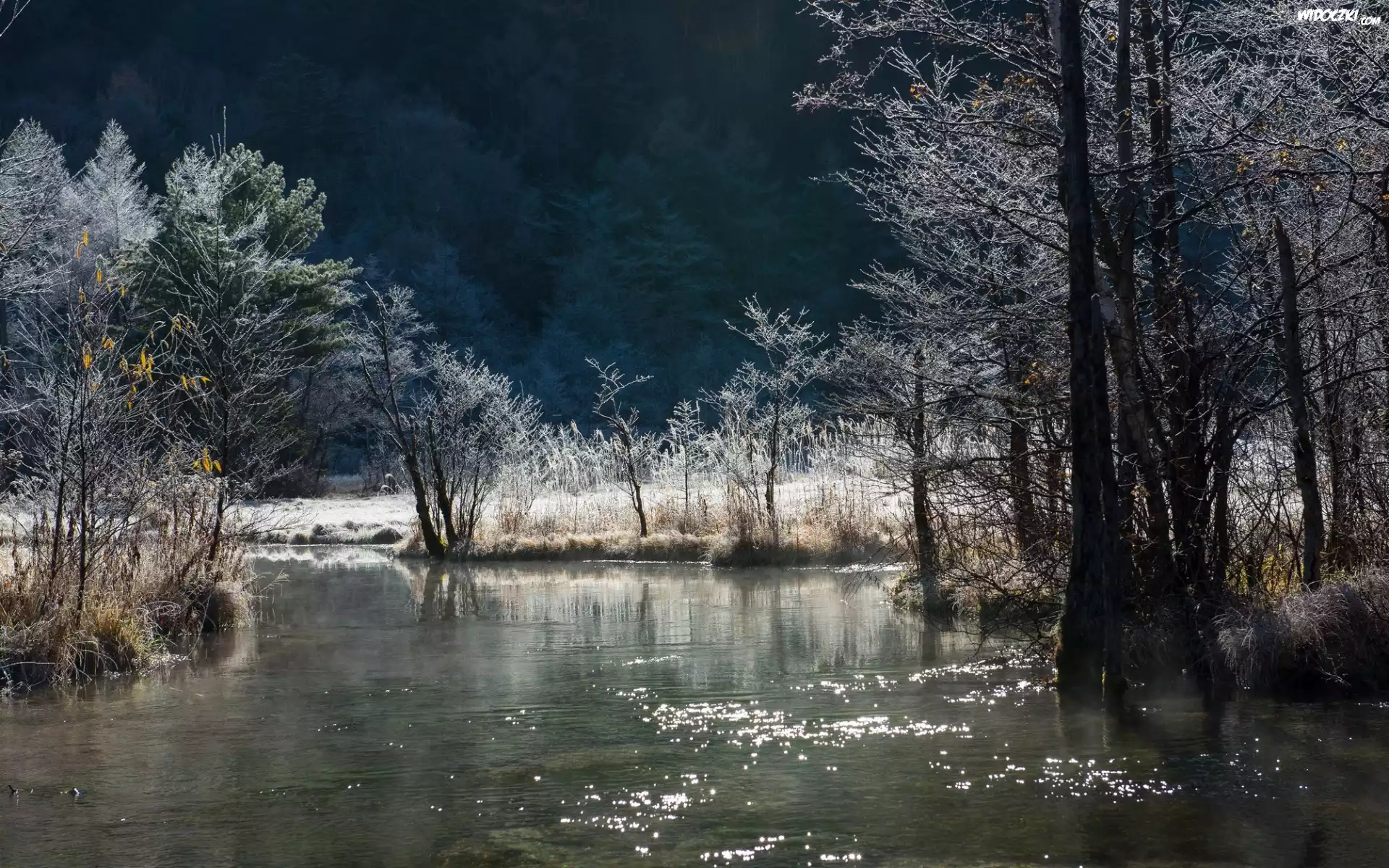 Zdjęcia, Rzeka, Góry, Lasy, Zima