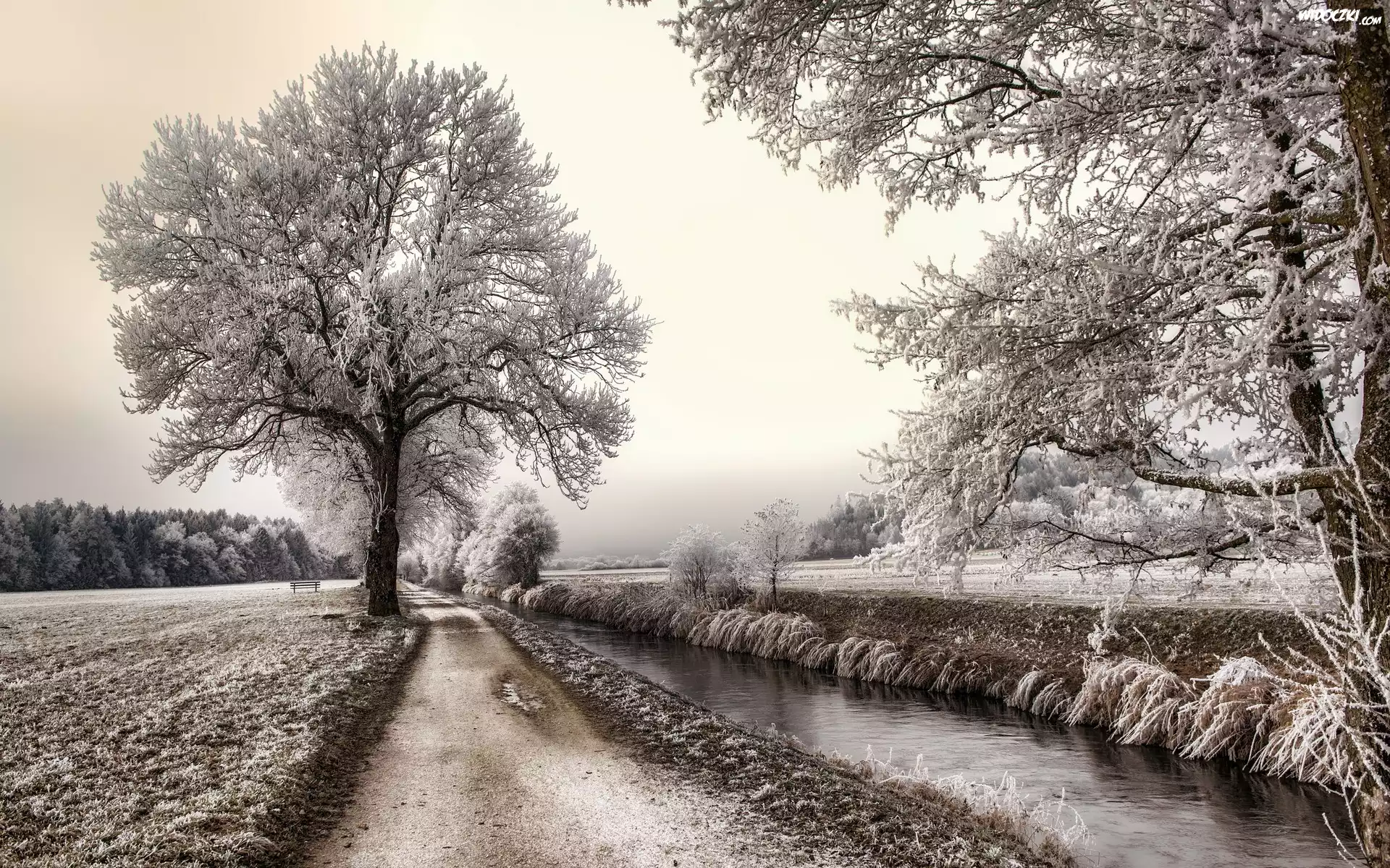Zdj臋cia, Rzeka, Droga, Pola, Lasy, Zima