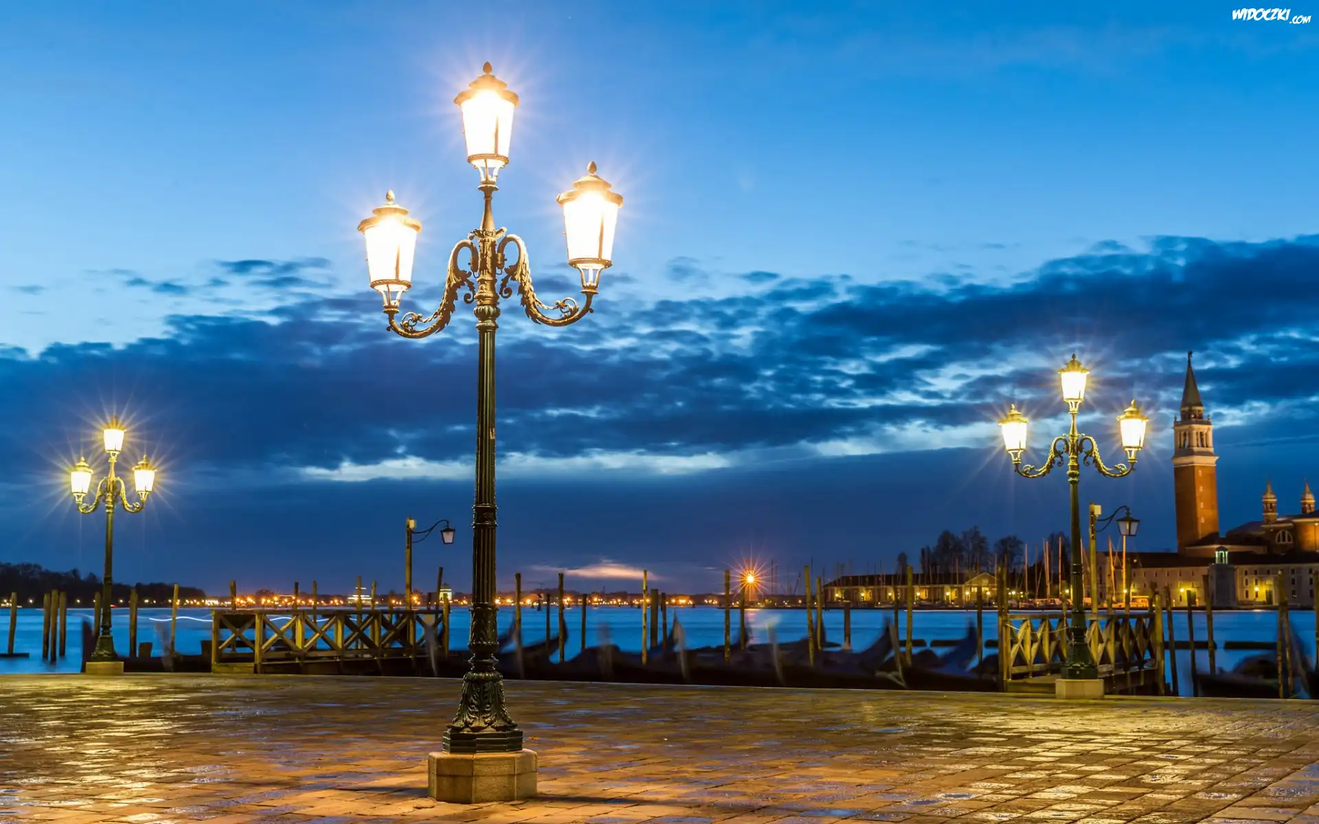 Zdj臋cia, Rzeka, Most, Latarnie, Chmury, Wenecja