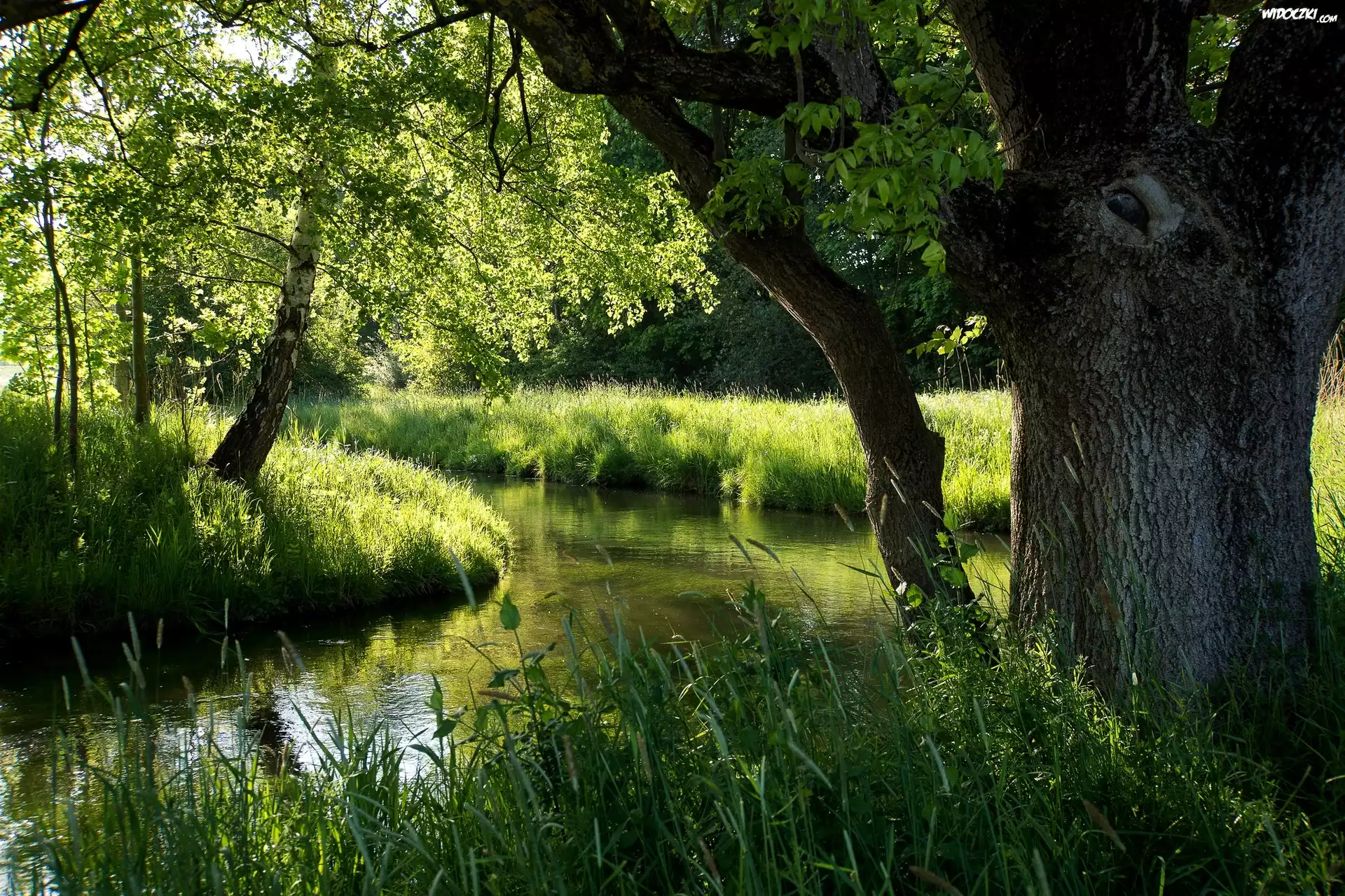 Zdjęcia, Rzeka, Las, Lato, Drzewa