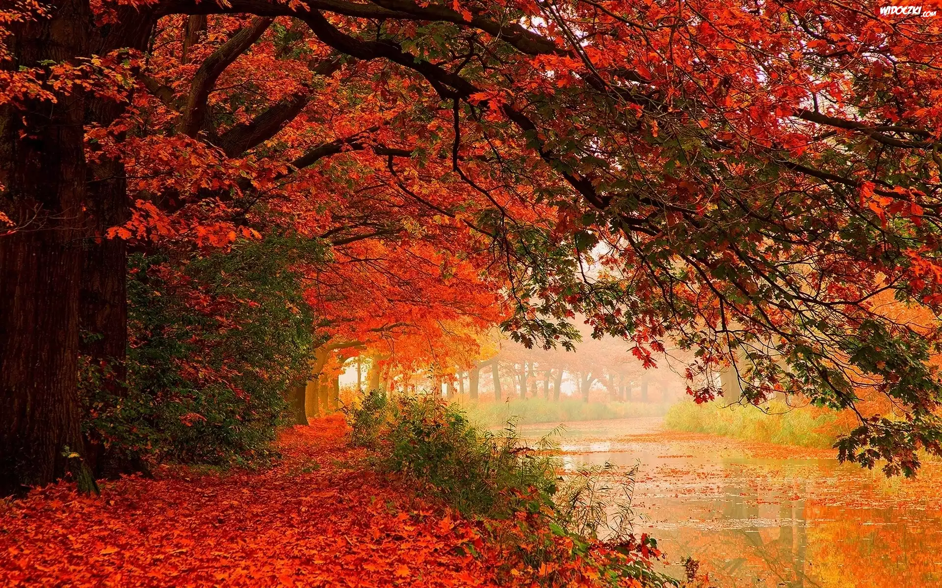Zdjęcia, Rzeka, Drzewa, Kolorowe, Liście, Jesień