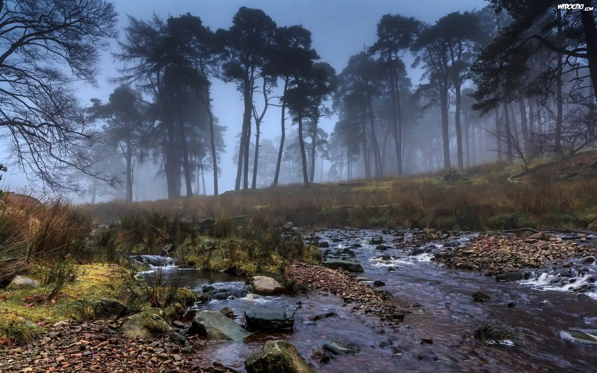 Zdjęcia, Rzeka, Kamienie, Mgła, Las