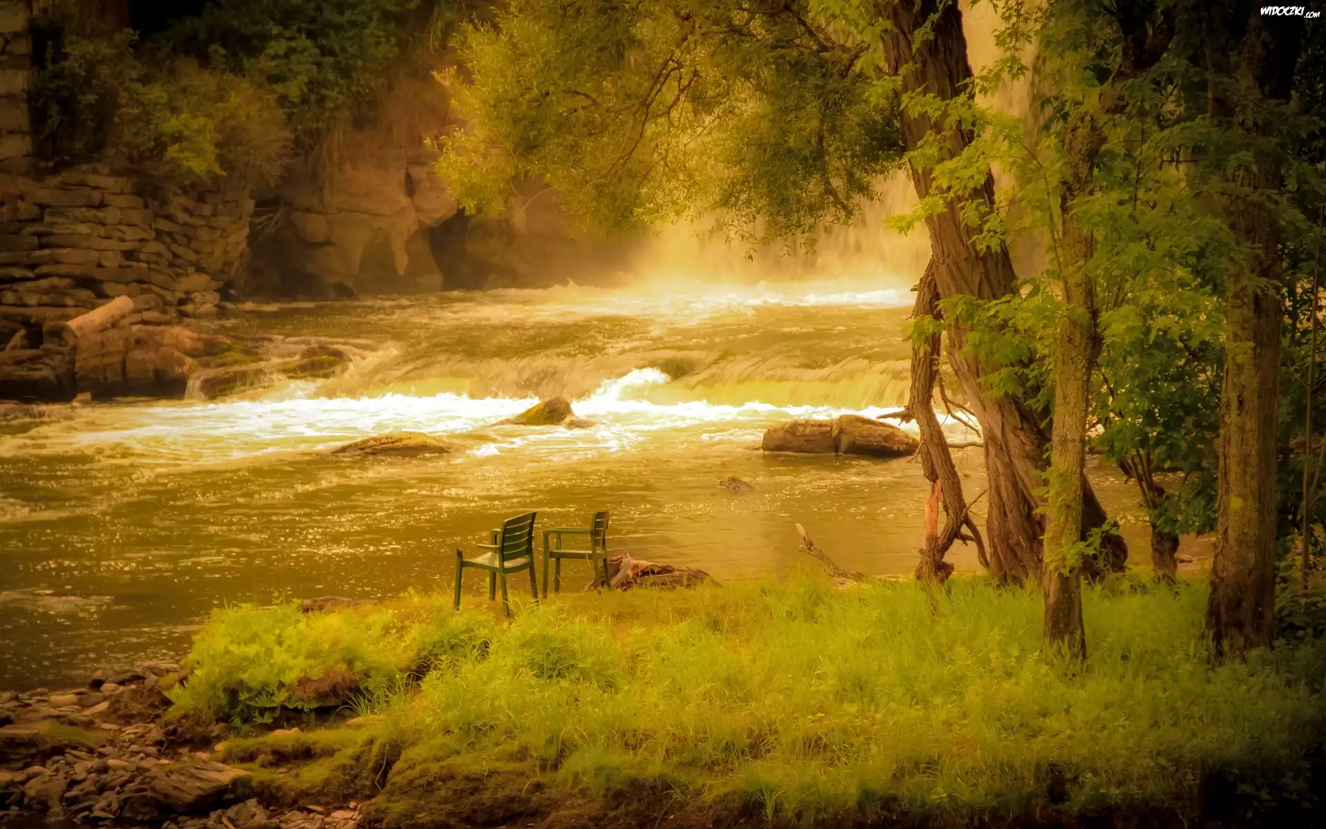 Rzeka, Las, Mgła, Skały