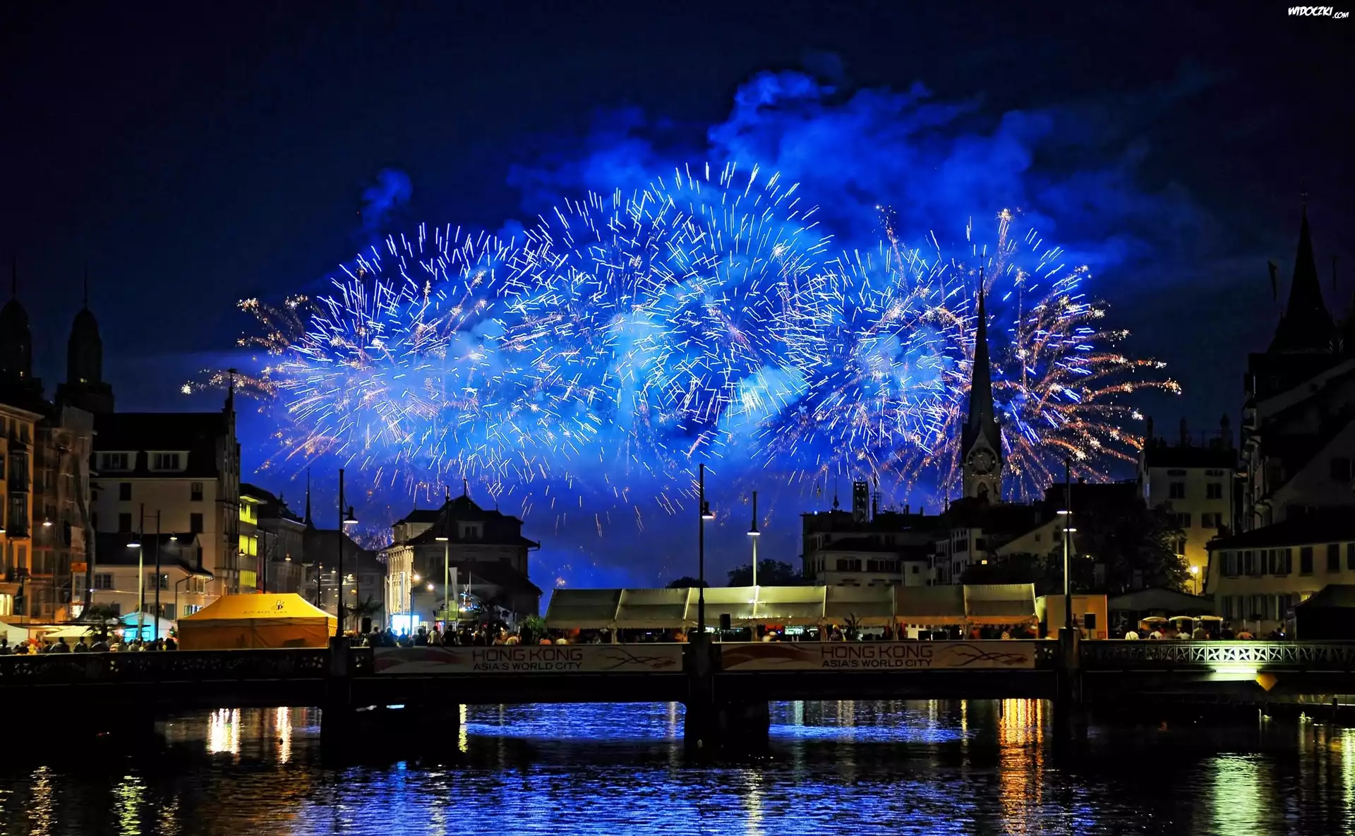 Zdjęcia, Miasto, Rzeka, Fajerwerki