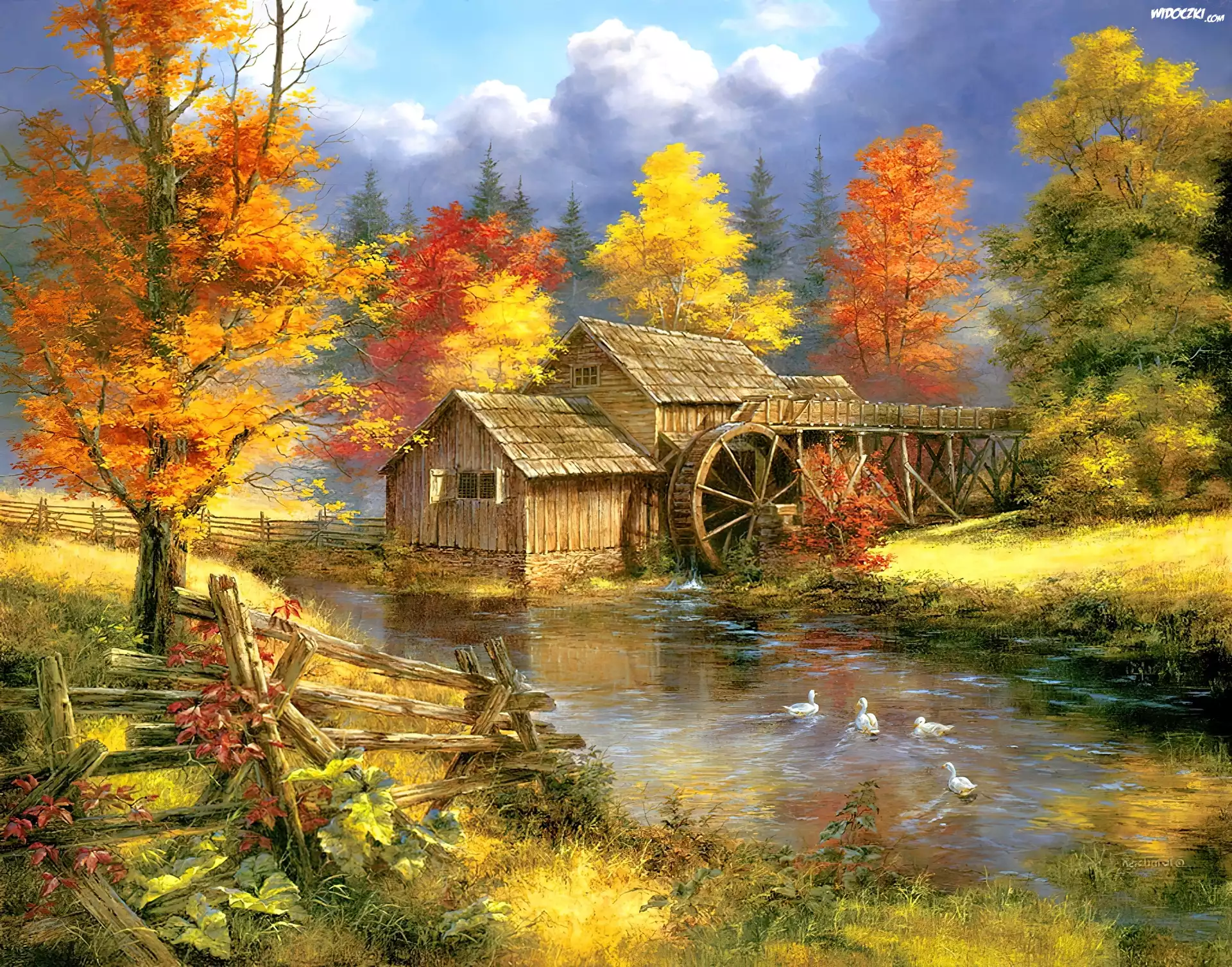 Zdjęcia, Młyn, Rzeka, Drzewa