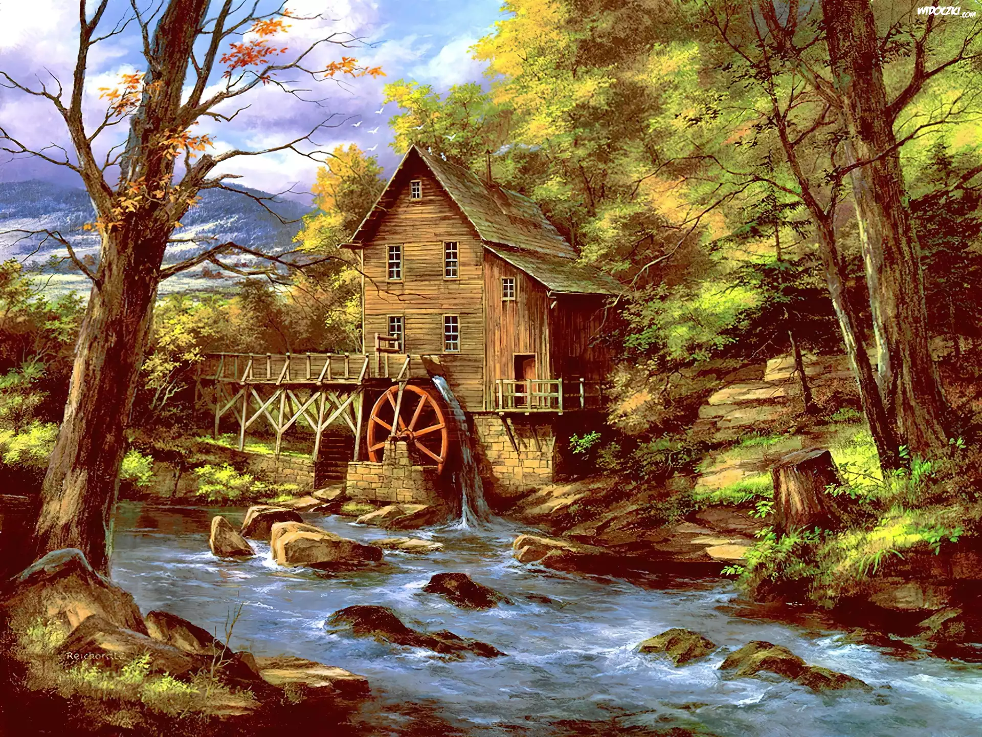 Zdjęcia, Młyn, Rzeka, Kamienie