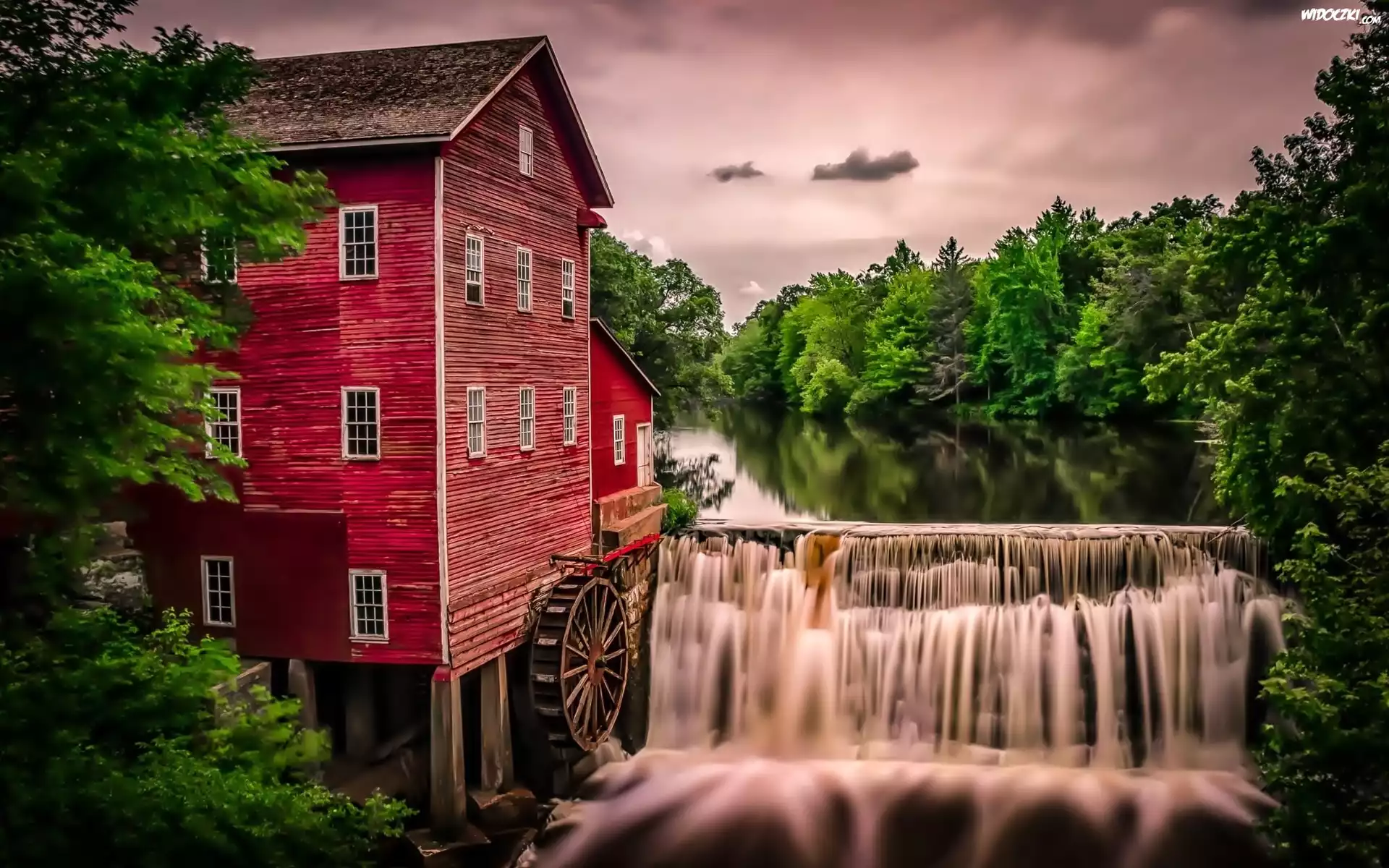 Rzeka, Wodospad,, Las, Młyn, Wodny