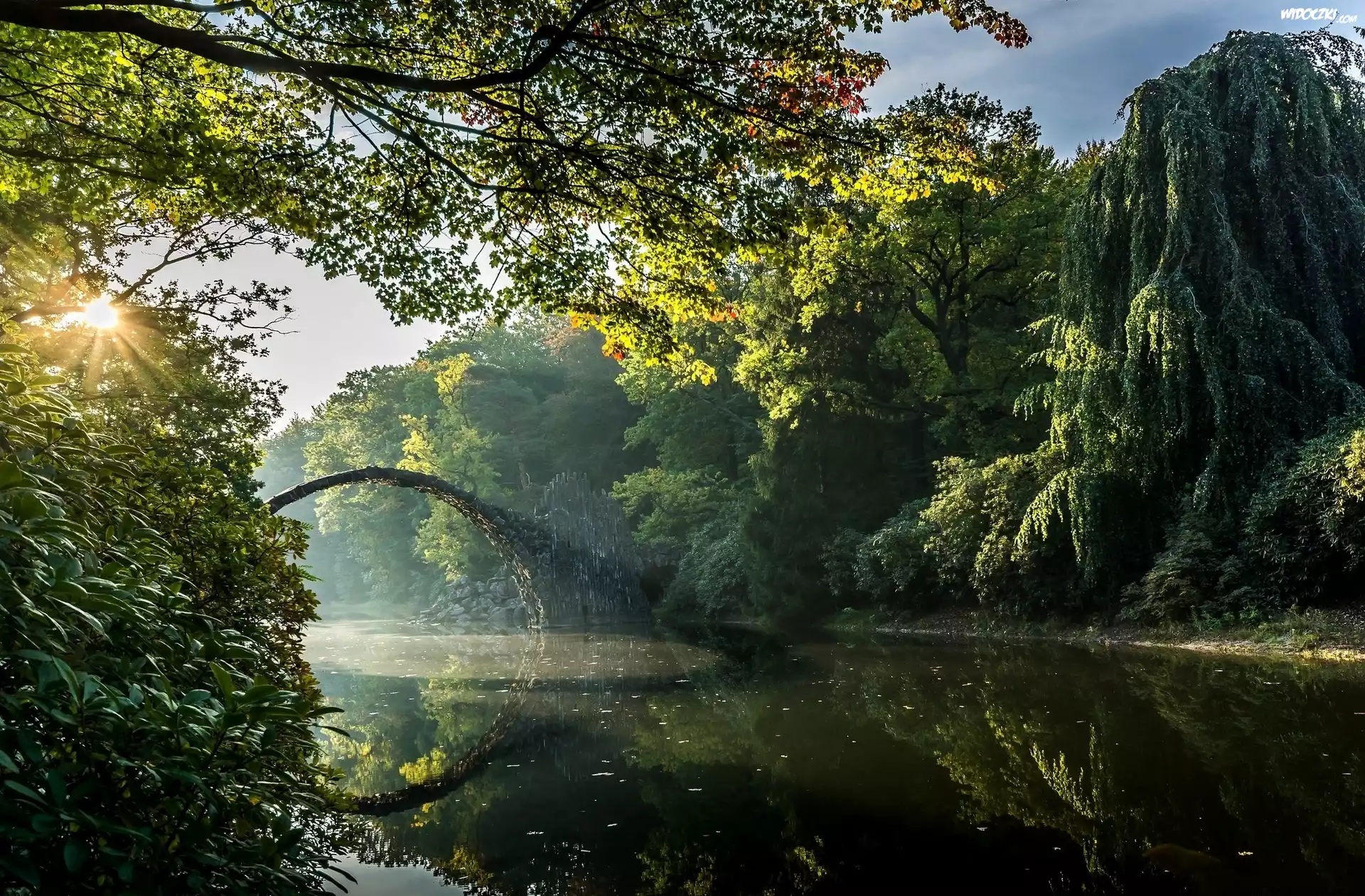 Zdj臋cia, Rzeka, Drzewa, Kamienny, Most, Odbicie