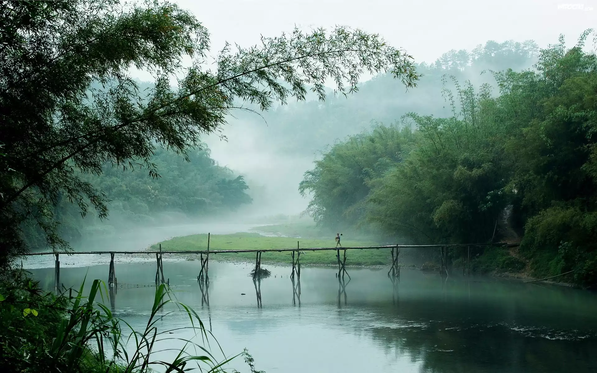 Rzeka, Lasy, Most, Mgła