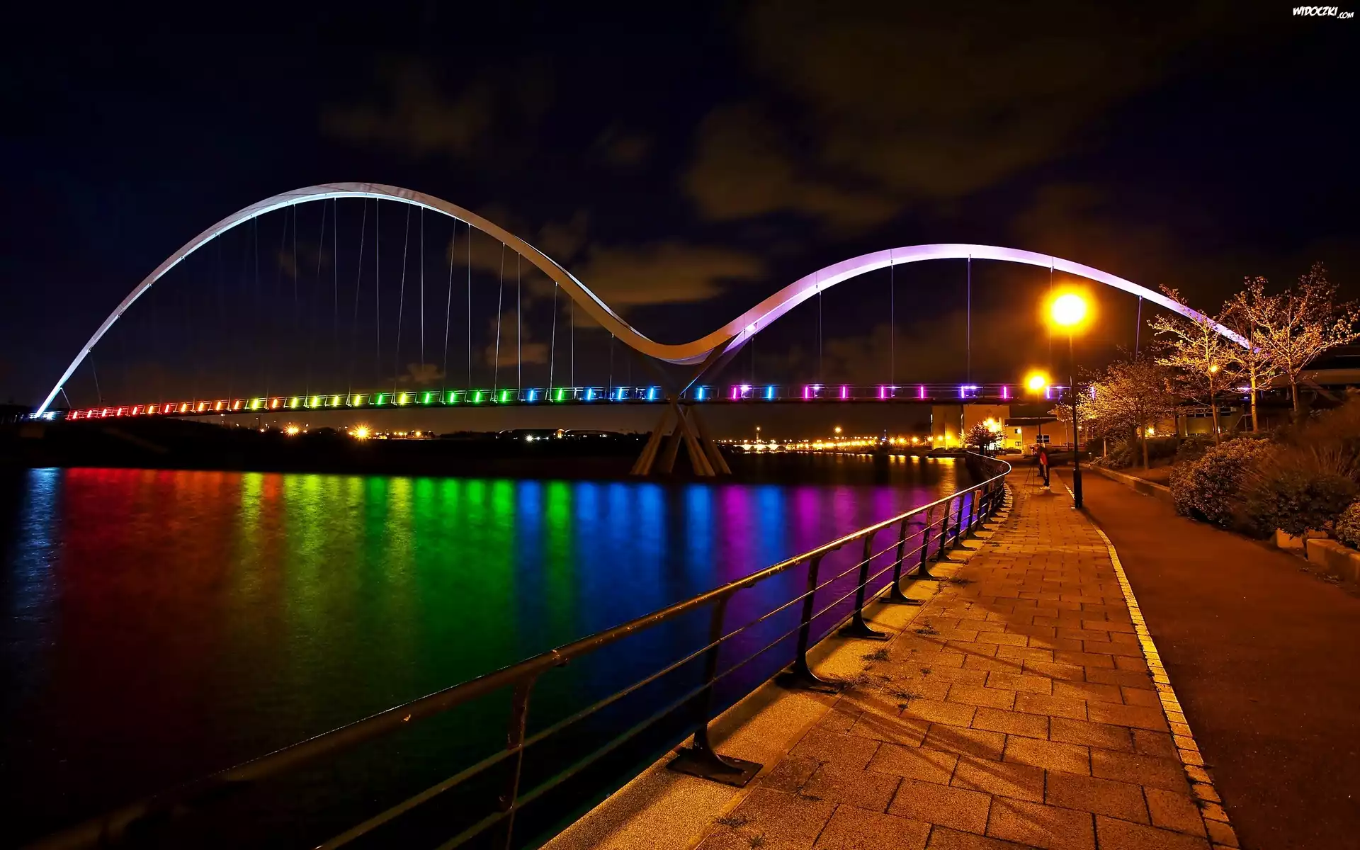 Zdjęcia, Rzeka, Oświetlony, Most, Bulwar