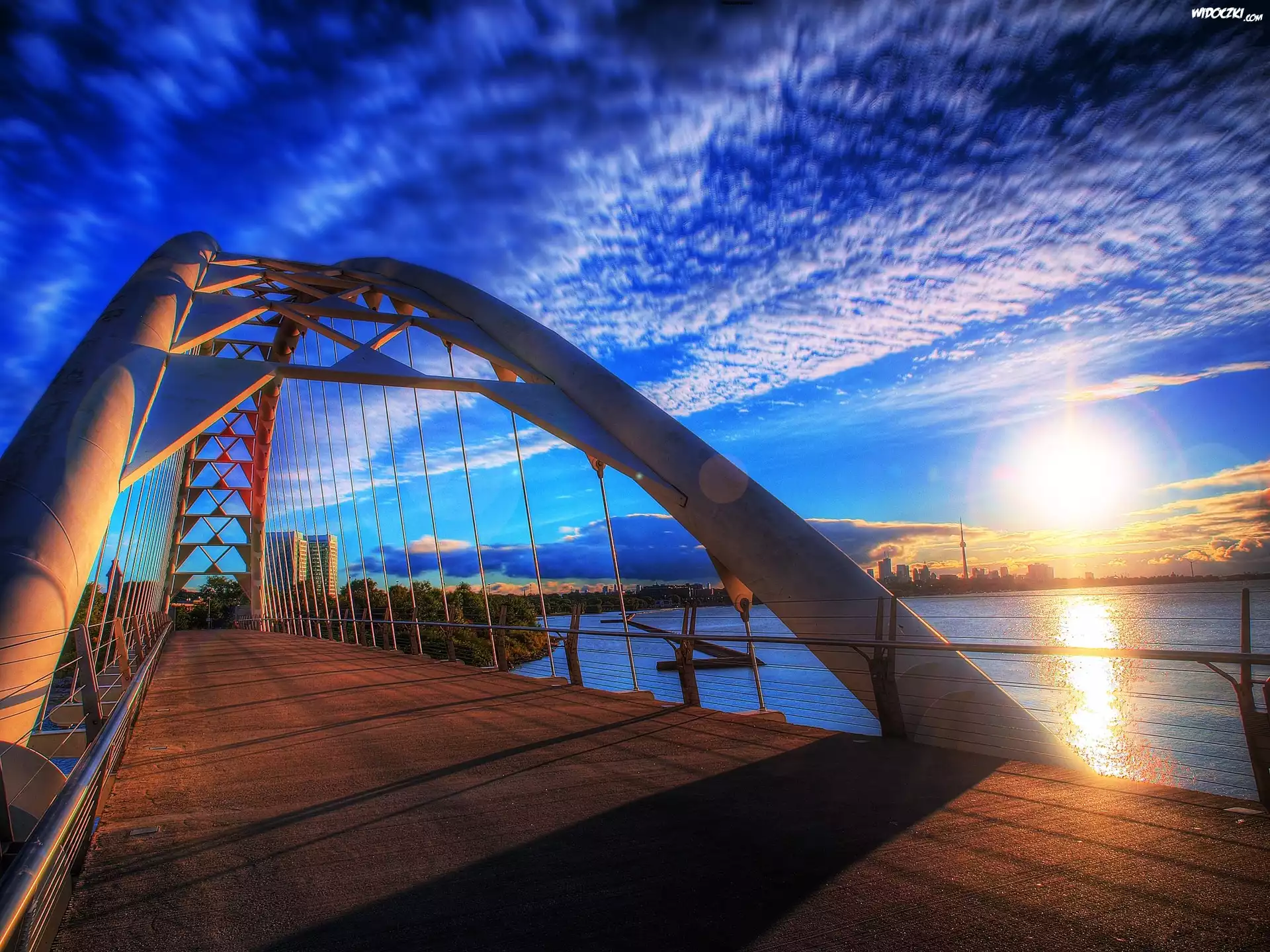 Zdjęcia, Most, Rzeka, Słońce, Toronto, Kanada