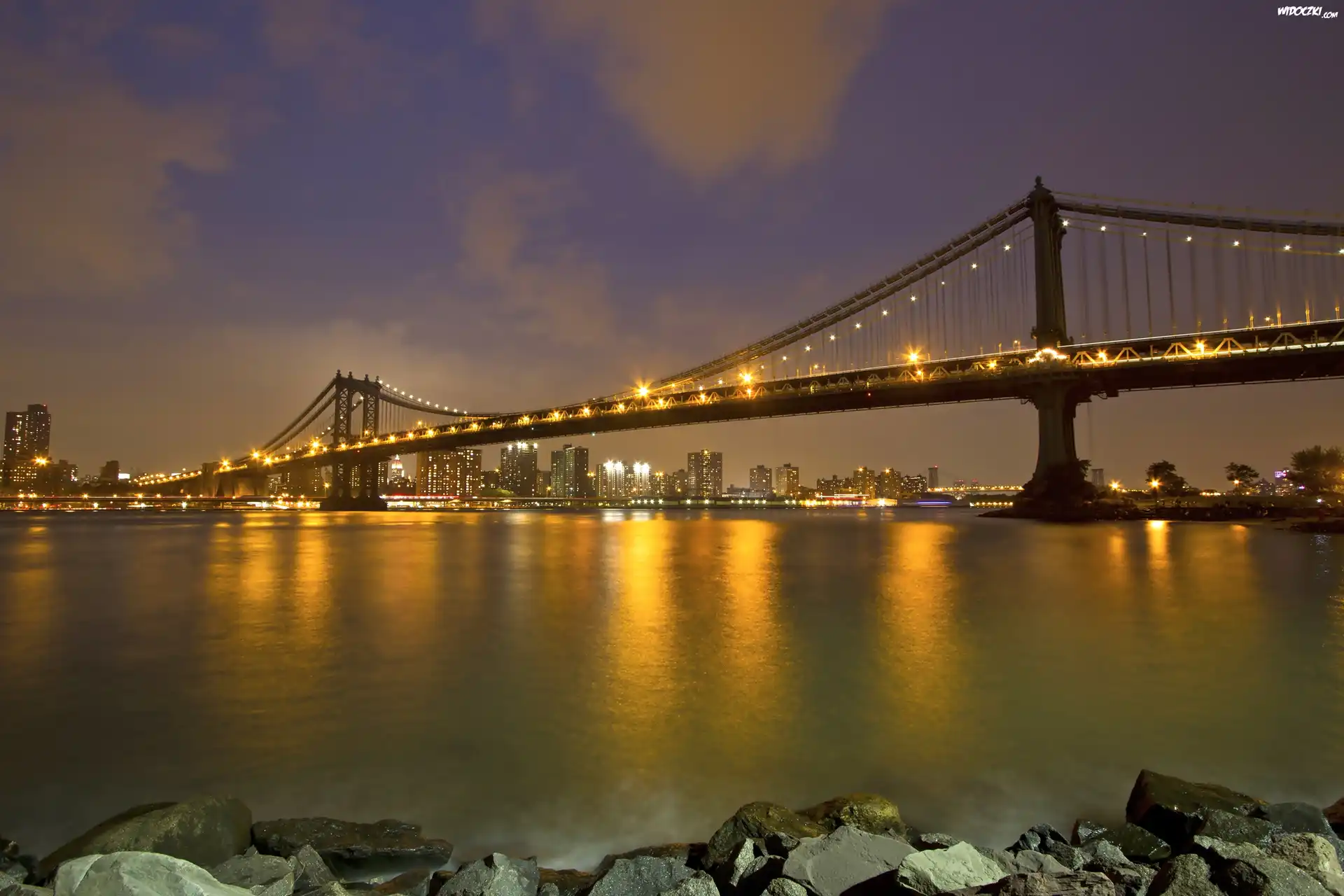 Most, Rzeka, Kamienie, Manhattan Bridge, Nowy York