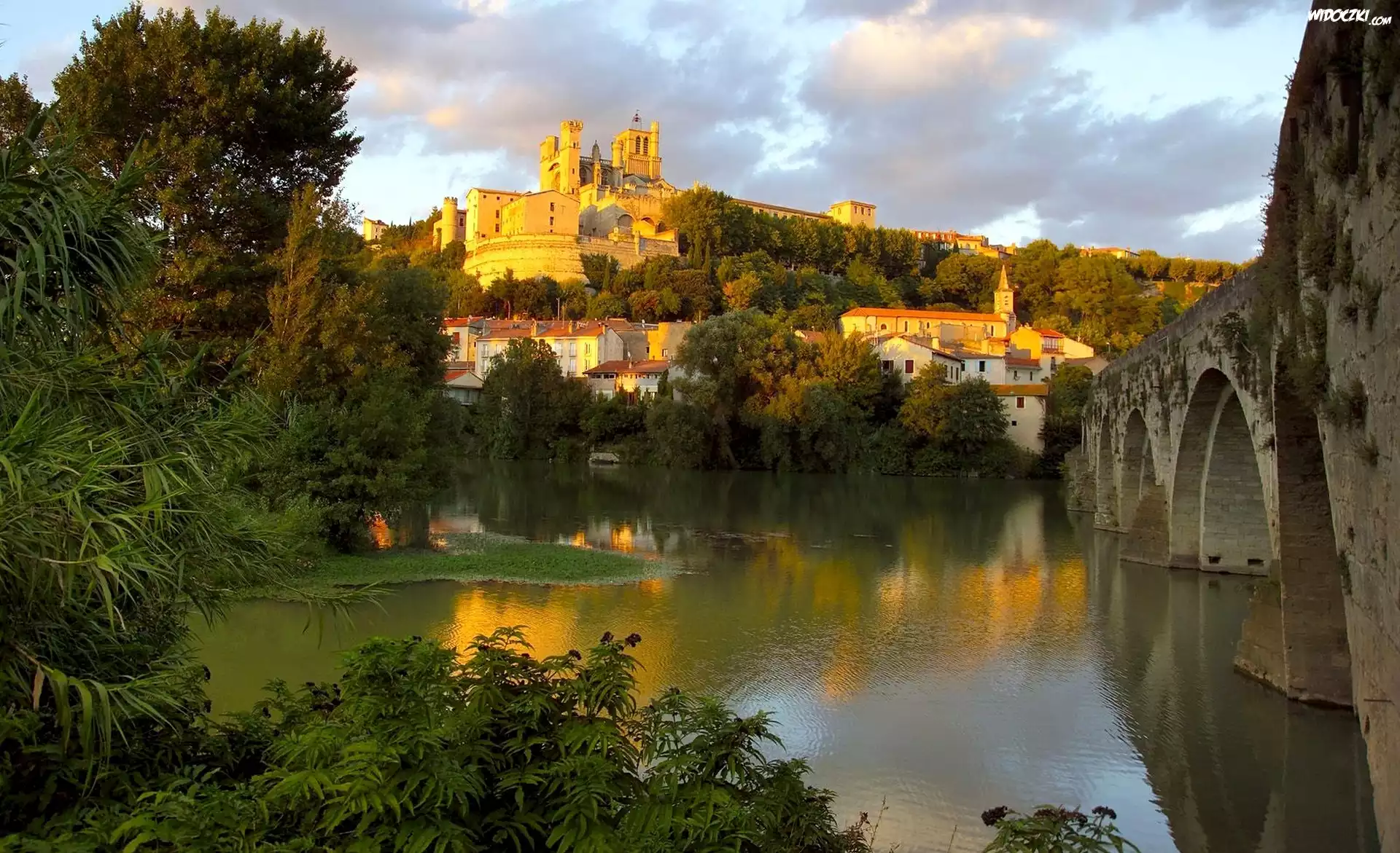 Zdjęcia, Katedra Saint Nazaire, Béziers Cathedral, Francja, Most, Rzeka
