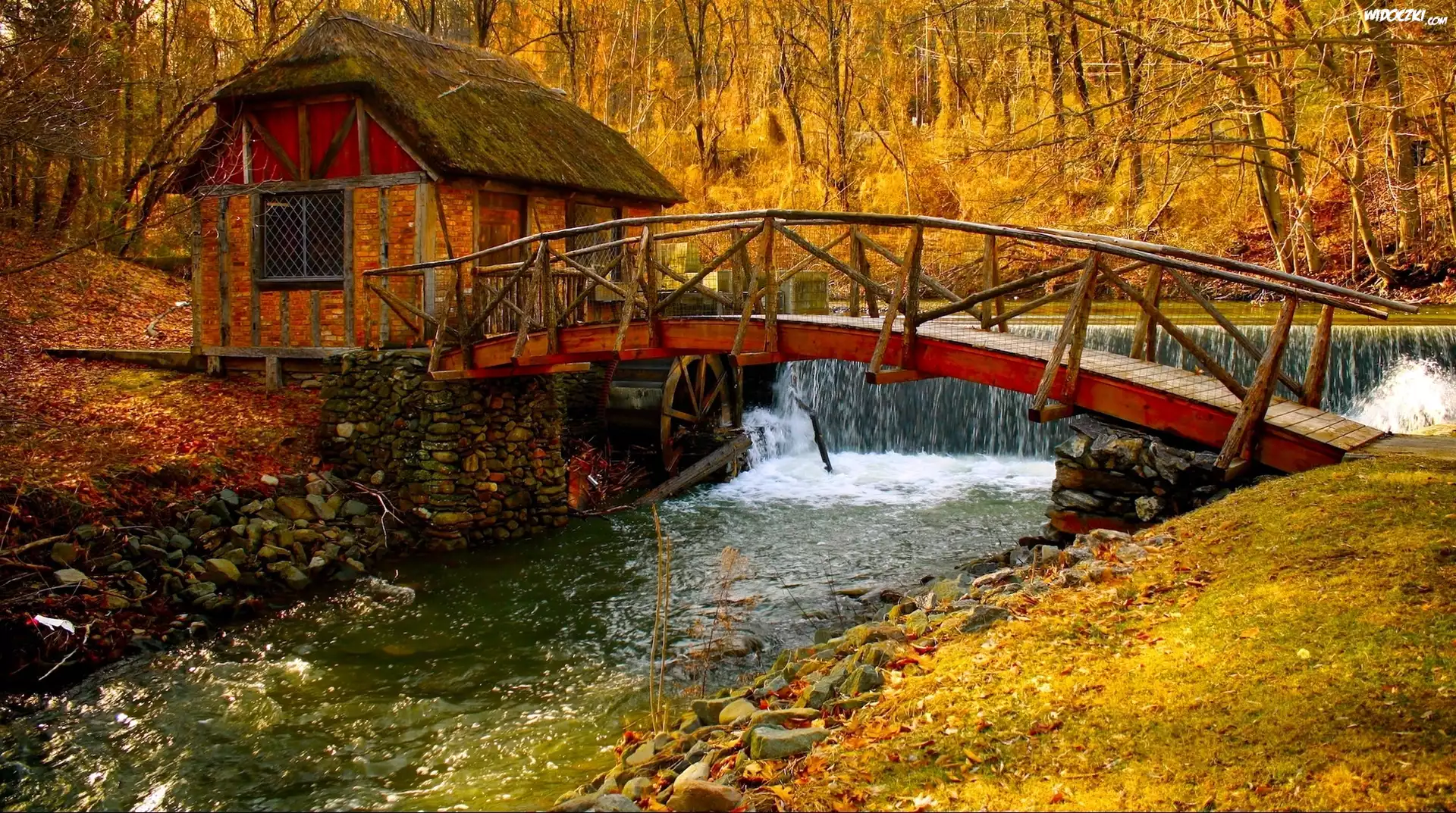 Zdjęcia, Rzeka, Wodospad, Mostek, Jesień